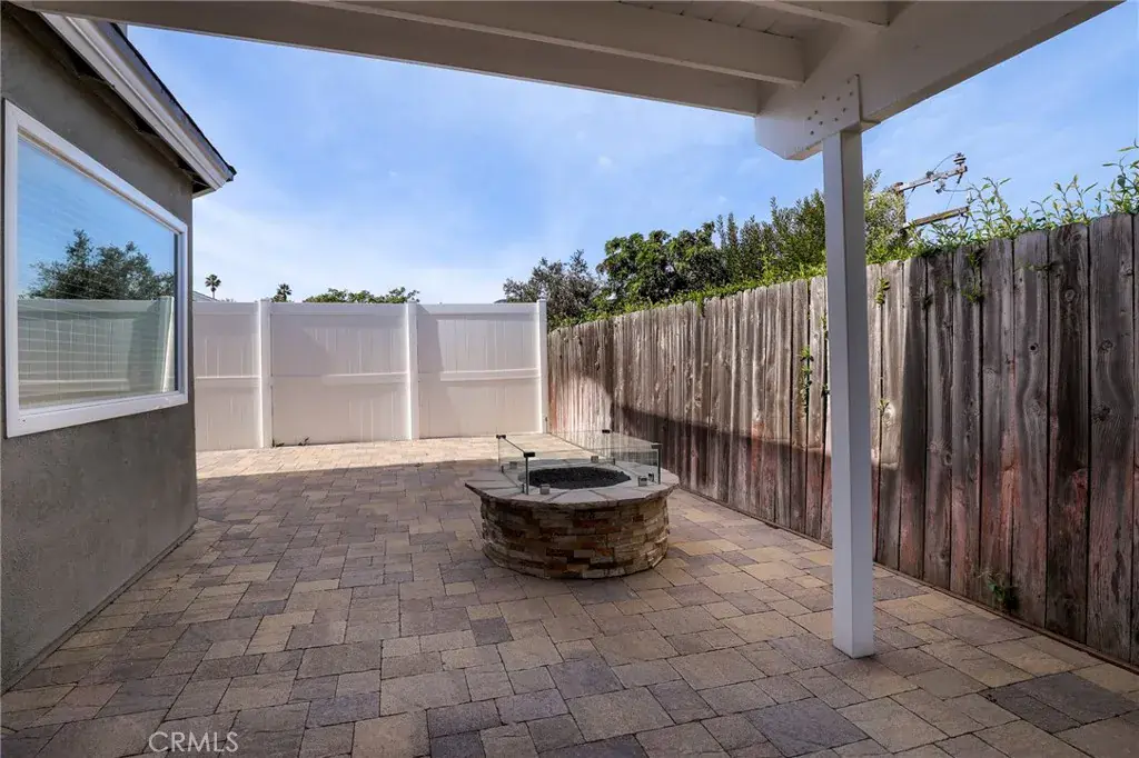 Significant system improvements include replaced windows, a replaced roof, an updated HVAC system, and a tankless water heater, offering peace of mind and energy savings. The backyard is designed for entertaining and relaxation, featuring pavers, a cozy fire pit, and a recently installed patio cover for year-round enjoyment.
