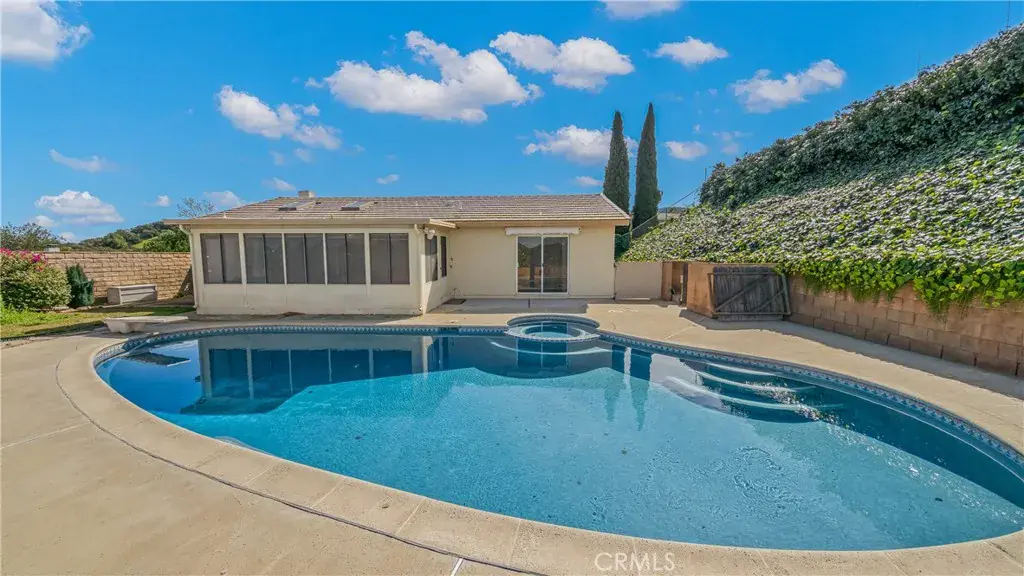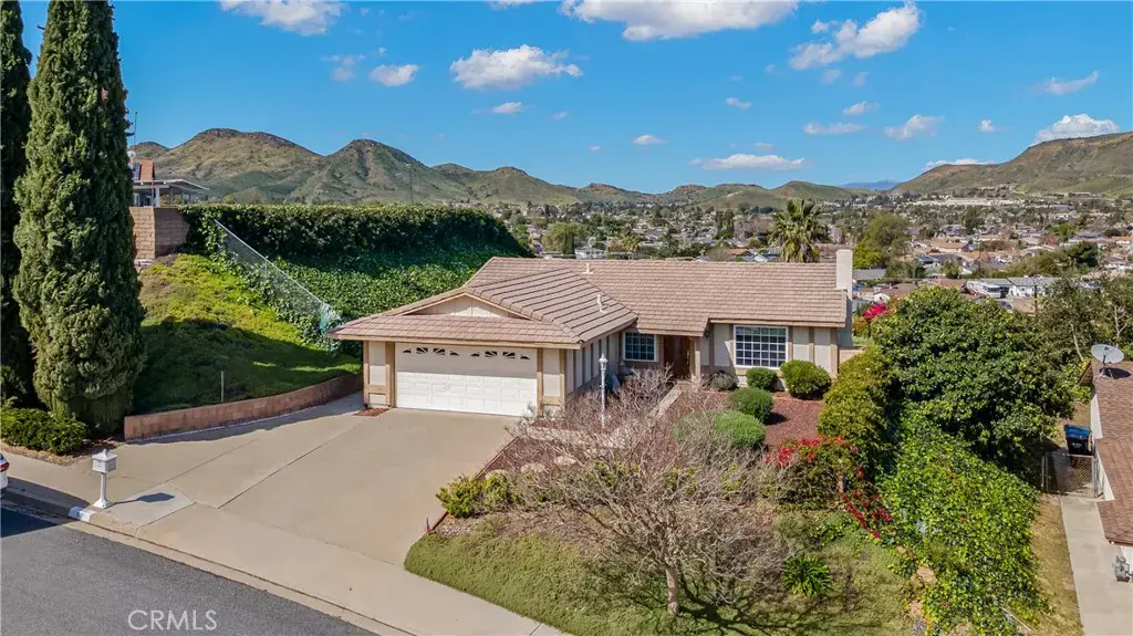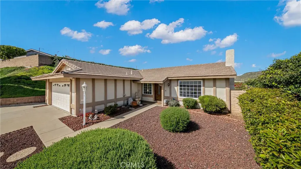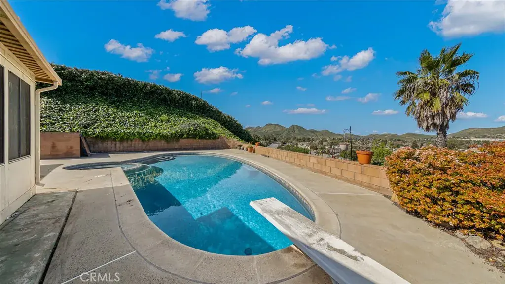 Welcome to this lovingly maintained 3-bedroom, 2-bathroom single-story home offering 1,200 sq ft of living space on an expansive 15,600 sq ft lot. Nestled on an elevated lot with sweeping panoramic views, this property is bursting with potential and ready for its next chapter. Step inside to a bright and spacious living room featuring a cozy brick fireplace, vaulted ceilings, and large picture windows that flood the space with natural light and frame the beautiful hillside scenery. The open layout flows seamlessly through the home, with a generous family room and a well-appointed kitchen boasting abundant cabinetry, a center island, tile countertops, a skylight, and charming French doors that lead directly to the backyard, perfect for indoor-outdoor entertaining. Outside, your private resort awaits. The stunning kidney-shaped pool and spa are surrounded by a spacious concrete deck, all set against a backdrop of lush greenery and mountain views that stretch for miles. Whether hosting summer gatherings or enjoying a quiet evening under the stars, this backyard truly delivers. Additional highlights include a two-car garage, low-maintenance drought-tolerant landscaping in the front yard, and a tile roof. This is a fantastic opportunity for buyers or investors looking to add their personal touch and unlock the full potential of this diamond in the rough. Don’t miss this rare find. Homes with lots this size, views like these, and a pool are few and far between!