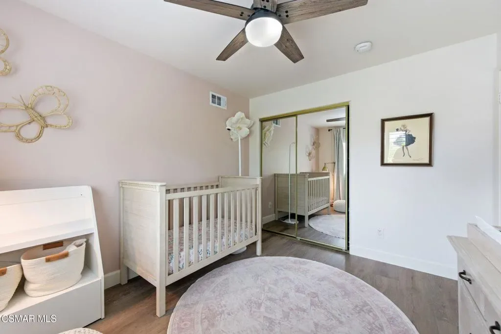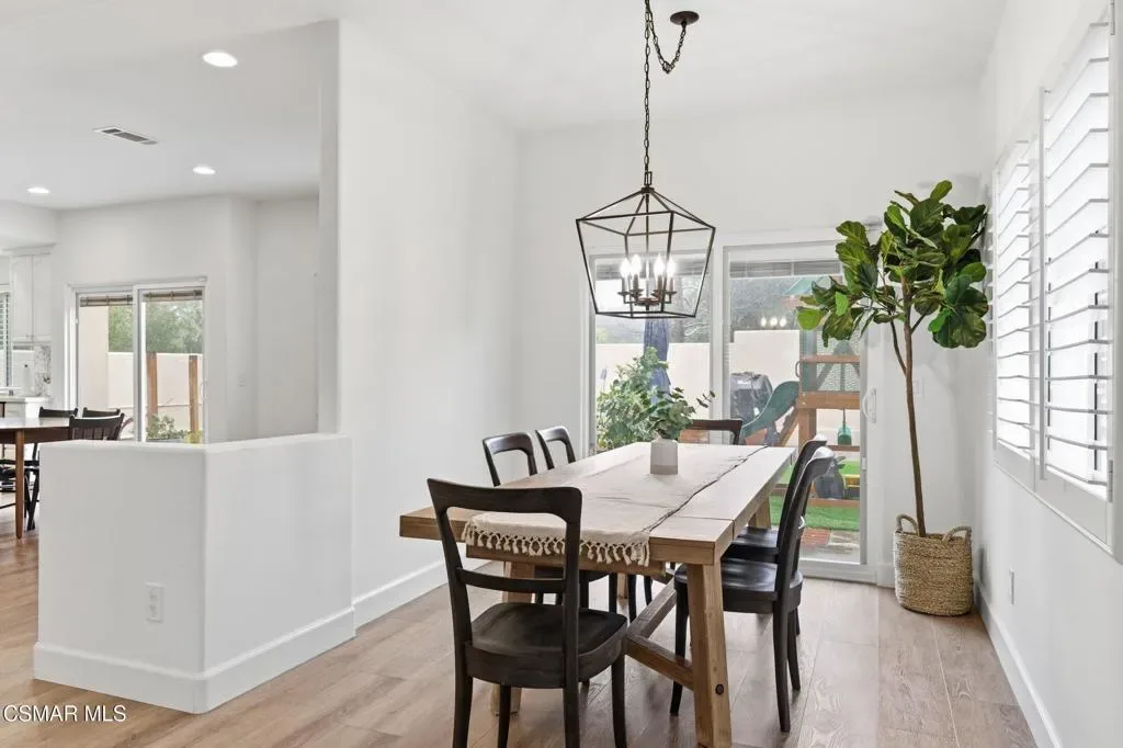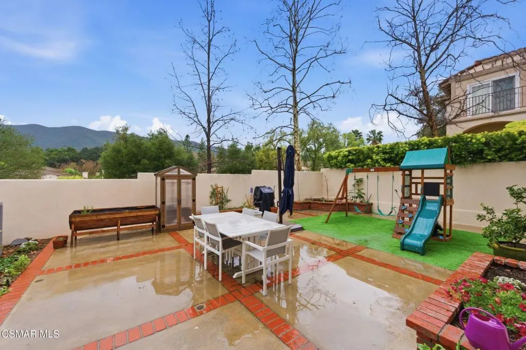 Discover your perfect home in a quiet, serene neighborhood in Newbury Park. This beautiful cul-de-sac residence offers three bedrooms- an office with the possibility of a 4th bedroom. Living room with high volume ceilings, beautiful stone gas fireplace. Enjoy modern upgrades including dining in the remodeled kitchen with quartz countertops, stainless steel appliances, laundry room, newer windows, shutters, flooring, and sliding doors, as well as updated HVAC and water heater installed in 2021. Bedrooms located upstairs, Double door entry to the Primary bedroom, private ensuite with dual vanity, oversized walk-in shower and soaking tub. Secondary bedrooms with mirror wardrobe and ceiling fans. Smart home technology such as a Ring doorbell and alarm system, Ecobee thermostat, myQ Bluetooth garage door, and newer appliances provide convenience and security. Take in breathtaking mountain views with no neighbors behind you and relax in a spacious yard featuring an assortment of fruit trees, strawberries, blueberries, and grapes. This home includes most backyard essentials like a greenhouse, planter box, playset, dining set, and a Cantilever umbrella. Direct access to the attached 2 car garage. The HOA gives access to a community pool, maintains greenbelts. Don’t miss this exceptional opportunity to make this stunning property your new home