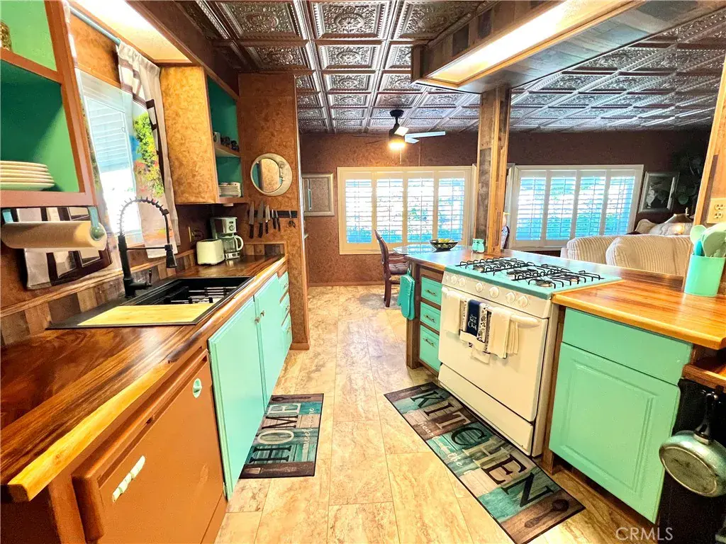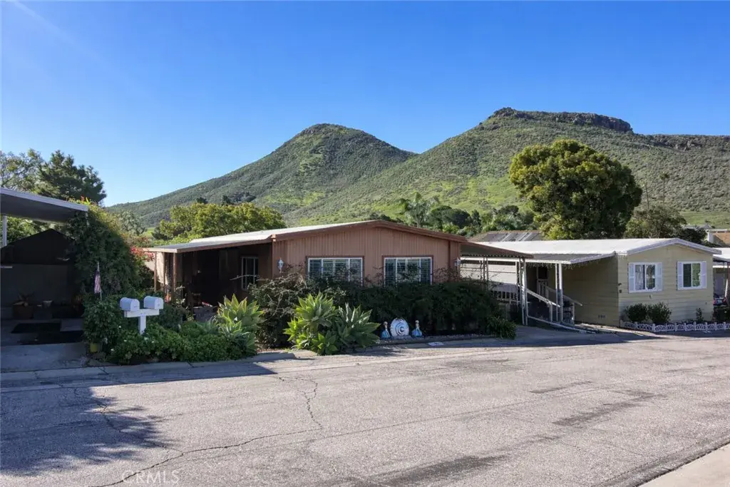 Welcome to this beautifully customized and thoughtfully upgraded home located in the desirable, gated 55+ Vallecito Mobile Home Park in Newbury Park. Designed with intention and care, this light and bright residence features an open concept floor plan highlighted by a spacious kitchen island with bar seating, ample cabinetry and shelving, a stainless steel sink with updated faucet, dishwasher, and tasteful built in details throughout. Recent improvements include newer flooring, custom interior and exterior paint, dual pane windows, plantation shutters, updated fixtures, and a built-in electric fireplace that adds warmth and character to the living space. The home offers two baths, generous storage throughout, a dedicated indoor laundry area with washer and dryer, and a primary bedroom with a walk-in closet. Outdoors, enjoy an expanded covered side patio, mature landscaping including a lemon tree, two storage sheds, and an oversized driveway with room for multiple vehicles, all complemented by the privacy of having no neighbors directly behind and scenic hillside views. Vallecito Mobile Home Park is a well-maintained, gated community offering a pool, spa, clubhouse, gym, BBQ area, mini-golf, community dog run, library, and a welcoming social atmosphere, conveniently located near Peppertree Park, local hiking trails, shopping, and everyday conveniences. This home reflects true pride of ownership, craftsmanship, and a unique sense of style within a peaceful and connected community setting.