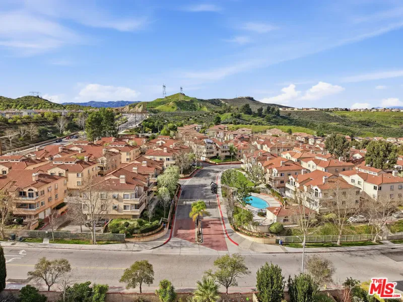 Rare corner-unit condo in the gated Sierra Glen community of Newhall! This bright 3-bedroom, 2-bath home features a spacious loft perfect for an office, gym, or bonus living space. Vaulted ceilings and abundant natural light fill the open living room with a cozy gas fireplace, flowing seamlessly into the dining area with a stylish chandelier. The kitchen boasts new appliances, updated hardware, and a sunny window over the sink with community views. Enjoy indoor laundry with washer and dryer included, a rare two-car side-by-side garage, and a private balcony ideal for relaxing or entertaining. High ceilings throughout enhance the sense of space, while the two-story end-unit layout offers privacy and comfort. Residents enjoy resort-style amenities including a sparkling pool and spa, controlled access, and well-maintained grounds. Perfectly located near the 14 Freeway, shopping, dining, and parks, with top schools nearby. With 1,078 sq. ft. of thoughtfully designed space, central heating and cooling, and HOA coverage for water, trash, insurance, pool, and spa, this condo combines convenience, style, and lifestyle. Ideal for first-time buyers, investors, or anyone seeking Southern California living in a prime Santa Clarita Valley location. Don’t miss this exceptional opportunity!