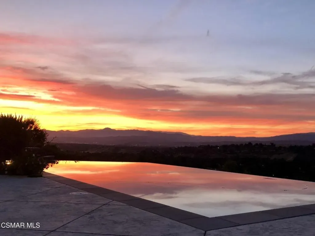 Custom designed by noted local architect David Weary, this extraordinary mountaintop estate in Newhall commands sweeping, unobstructed views across the entire Santa Clarita Valley, reaching as far as Six Flags Magic Mountain. From the first light of sunrise to the glow of city lights at night, the setting delivers a constantly evolving backdrop that feels both expansive and serene.Thoughtfully conceived as a single-story residence, the home was designed to embrace its surroundings at every turn. David Weary’s signature motif is the striking atrium skylight which greets you at the entry. Expansive windows and French doors throughout the home frame panoramic vistas, creating a strong connection between indoor living spaces and the landscape beyond.The primary suite serves as a private retreat, offering generous proportions, a quiet sitting or reading area, and direct access to the outdoors. Additional bedrooms are well-sized and versatile, ideal for guests, family, or workspace needs.The outdoor experience is equally compelling. An infinity-edge pool appears to merge with the horizon, creating the illusion of floating above the valley below. Multiple patio areas provide space for both entertaining and quiet relaxation, surrounded by mature landscaping and a variety of fruit trees including apple, avocado, apricot, and plum.Beyond the property, miles of nearby hiking trails wind through the surrounding hills, offering a true connection to nature just moments from home.Additional features include owned solar, a newly installed septic system, whole-house backup generator, and an attic fan designed to enhance ventilation and energy efficiency. A detached guest suite adjoining the three-car garage offers flexibility for extended family, guests, or potential income opportunities.Notably, the home was selected for the Santa Clarita Holiday Home Tour in 1995–an early recognition of its distinctive architecture and design.A rare combination of architectural pedigree, privacy, and panoramic beauty, this is elevated view living in one of Santa Clarita’s most scenic settings.