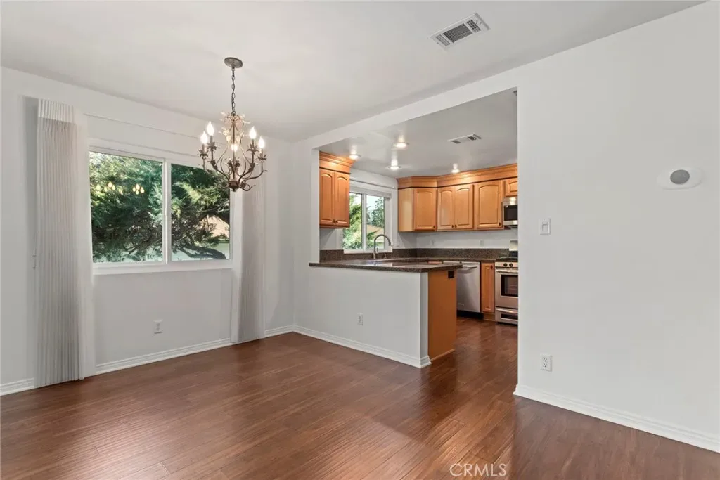 Welcome Home to Easy Living in a Vibrant 55+ Community! Step into this inviting end-unit condo and discover the perfect blend of comfort, style and convenience. Beautiful wood flooring welcomes you into the home and leads into a bright, updated kitchen featuring abundant cabinet space, recessed lighting, elegant granite countertops with a matching backsplash. A cheerful window over the sink fills the space with natural light, while the newer, matching appliances–including the washer and dryer–make daily living effortless. The open-concept living and dining area creates a warm, welcoming space to relax or entertain, highlighted by a dining chandelier. a shaded skylight, and a sliding glass door that leads to the enclosed patio. Enjoy peaceful mornings or evening gatherings while taking in the lovely mountain and valley views. The spacious primary suite serves as your peaceful retreat, complete with a dressing area featuring tiled flooring, a beautiful vanity with granite countertop, and a tiled shower with grab bars for added comfort and safety. Two closets–both with lighting and custom organizers–provide excellent storage. A sliding glass door offers direct access to the enclosed patio, creating a seamless indoor-outdoor connection. The front bedroom is idea for guests, a home office, or hobbies. Nearby, the hallway bathroom includes a tiled shower with a built-in seat and grab bars, a vanity with granite countertop and tiled flooring. Just outside the bathroom you’ll find two sets of cabinets with display shelving–perfect for linens and additional storage. All this in a beautifully maintained, gated 55+ community offering endless ways to stay active and connected. Enjoy a recently refurbished pool and hot tub (2023), auditorium, clubhouse, exercise room, game room, wood working, ceramics, shuffleboard, horseshoe court, basketball, picnic, BBQ’s, lawn bowling – plus two golf courses! The HOA covers trash, sewer, building and roof, landscaping/gardener, special cable TV offer, insurance and more! Gated entry with guard and patrols 24/7/365.
