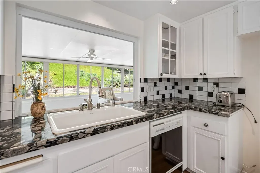The spacious floor plan features a large living room and dedicated dining area, ideal for entertaining and everyday comfort. The updated kitchen features sleek granite countertops, decorative tile backsplash, and ample cabinetry, and an updated garbage disposal. Recent improvements include exterior paint and water heater.