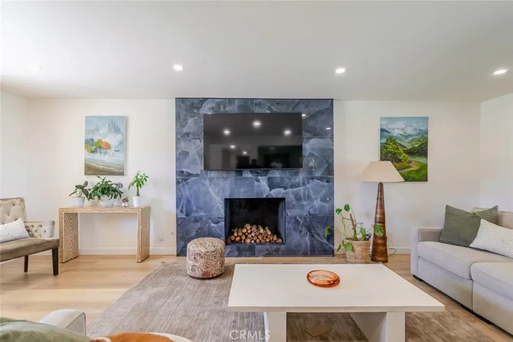 Beautiful two-story single-family home offering 2,140 sq ft of comfortable living space with 4 bedrooms and 3 bathrooms. This spacious home features recessed lighting creating a bright and airy atmosphere throughout. The inviting living room showcases a cozy fireplace with a stylish gray stacked-stone surround, adding a modern touch and warm focal point to the space.