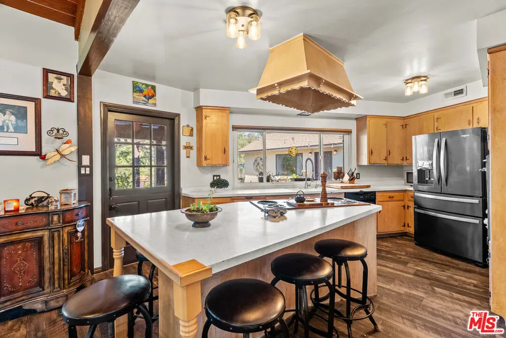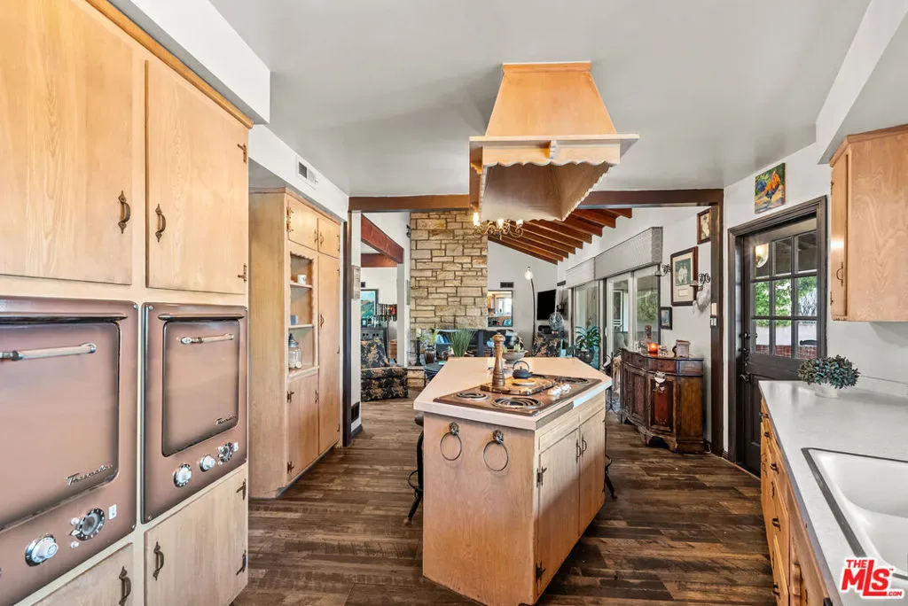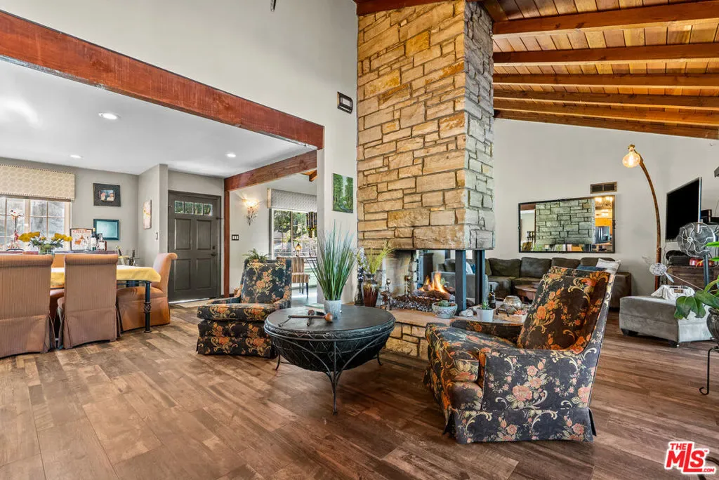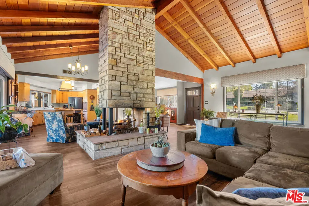 Welcome home to this charming cottage featuring 2 bedrooms and 2 bathrooms, plus a private en-suite detached guest house perfect for visitors, extended family, or potential rental income. Thoughtfully updated with newer plumbing and windows, this home blends modern convenience with timeless character. Step inside to vaulted ceilings and an open floor plan centered around a stunning three-sided stone fireplace that creates a warm and inviting focal point for the living spaces. The vintage kitchen with original Thermador appliances adds nostalgic charm while offering great functionality and flow for everyday living and entertaining. Both bathrooms in the main house have been beautifully remodeled, and wood-look tile flooring runs throughout, adding durability and incredible style. The detached guest house includes a full bathroom and is ready for a kitchen addition, offering endless possibilities. Additional highlights include a 2-car garage connected by an amazing breezeway, perfect for relaxing afternoons, and a large lot with a built in BBQ, fire-pit and room to expand, garden, or entertain. Warm, charming, and relaxing best describes how you will live here.