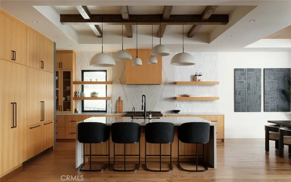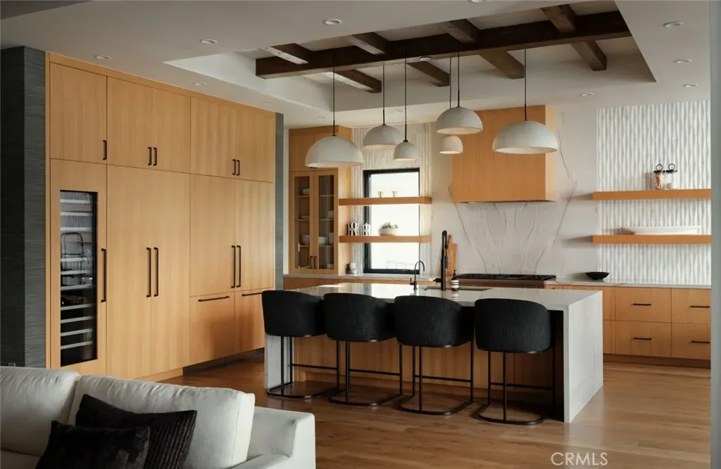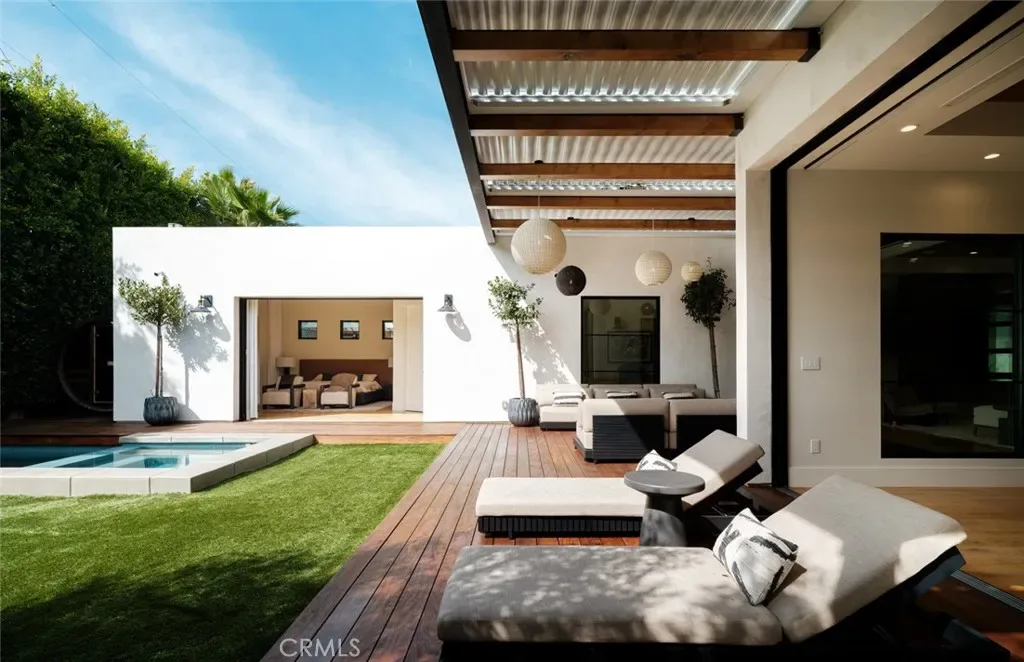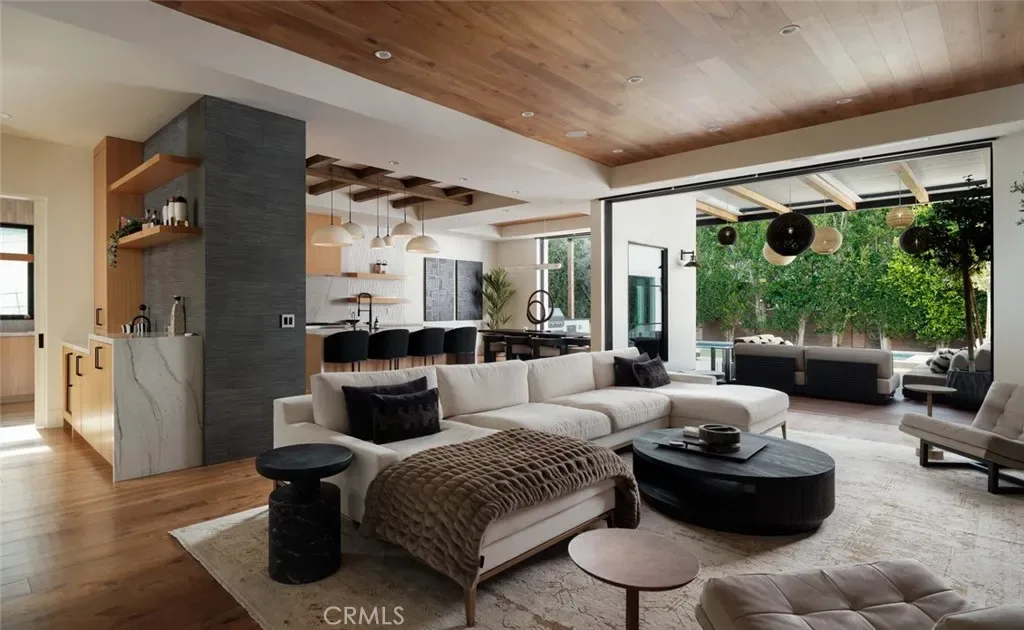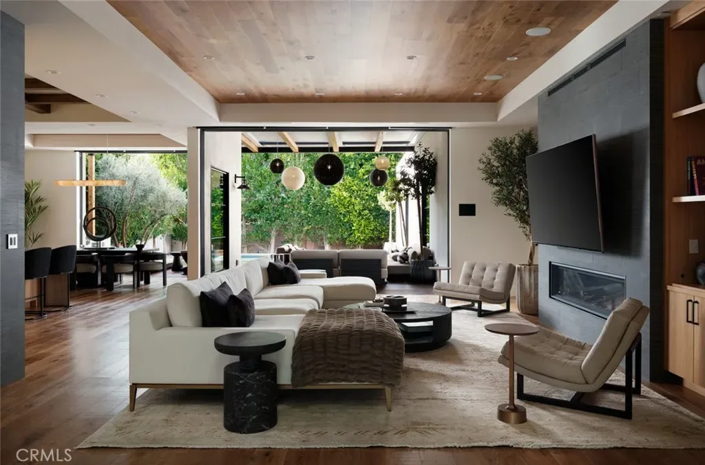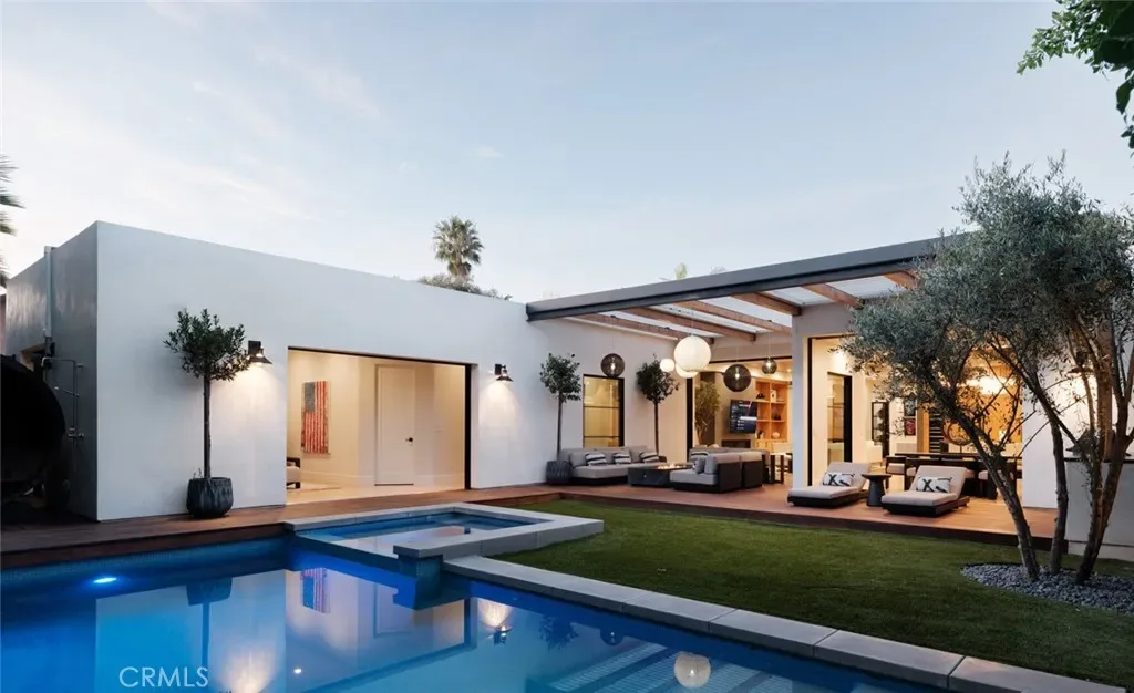 A disciplined expression of modern California architecture, this single-level residence—built in 2021 by Casa Arte Group—blends scale, materiality, and fully integrated technology into a turnkey living experience. Offered fully furnished, the home presents as a complete composition where design, function, and performance align. A quiet yet commanding entry opens into a voluminous great room defined by 11-foot ceilings and Warren Christopher wood flooring. Natural light moves intentionally through the space, reinforcing clean lines and an open layout that connects living, dining, and kitchen seamlessly. The kitchen is both sculptural and functional, anchored by Thermador smart appliances and designed as a central gathering point. It flows effortlessly into the surrounding living spaces, supporting both daily living and elevated entertaining. A fully owned 10.8kW SunPower solar system paired with four Tesla Powerwalls delivers energy independence, efficiency, and long-term value.The rear yard extends the architecture outdoors with a custom pool and spa, covered dining area, built-in barbecue, Restoration Hardware fire table, and StruXure motorized pergola with rain-sensing automation—creating a private, resort-caliber setting.The primary suite overlooks the yard and pool, offering a quiet retreat with a spa-inspired bath designed for comfort and simplicity. Three additional en-suite bedrooms provide privacy and flexibility for family or guests.Technology is seamlessly integrated, including a Unifi Enterprise network, Lutron RadioRA 3 lighting, whole-home Sonos audio, Ecobee climate control, Pentair smart pool system, and in-wall iPad control. Security features include 4K HDR cameras, smart doorbell, and Apple HomeKey entry. Additional features include Toto Neorest fixtures, dual Tesla chargers, 5.1 surround sound, whole-home water filtration, reverse osmosis system, infrared sauna, and organized garage. A rare, fully realized offering in Newport Beach.