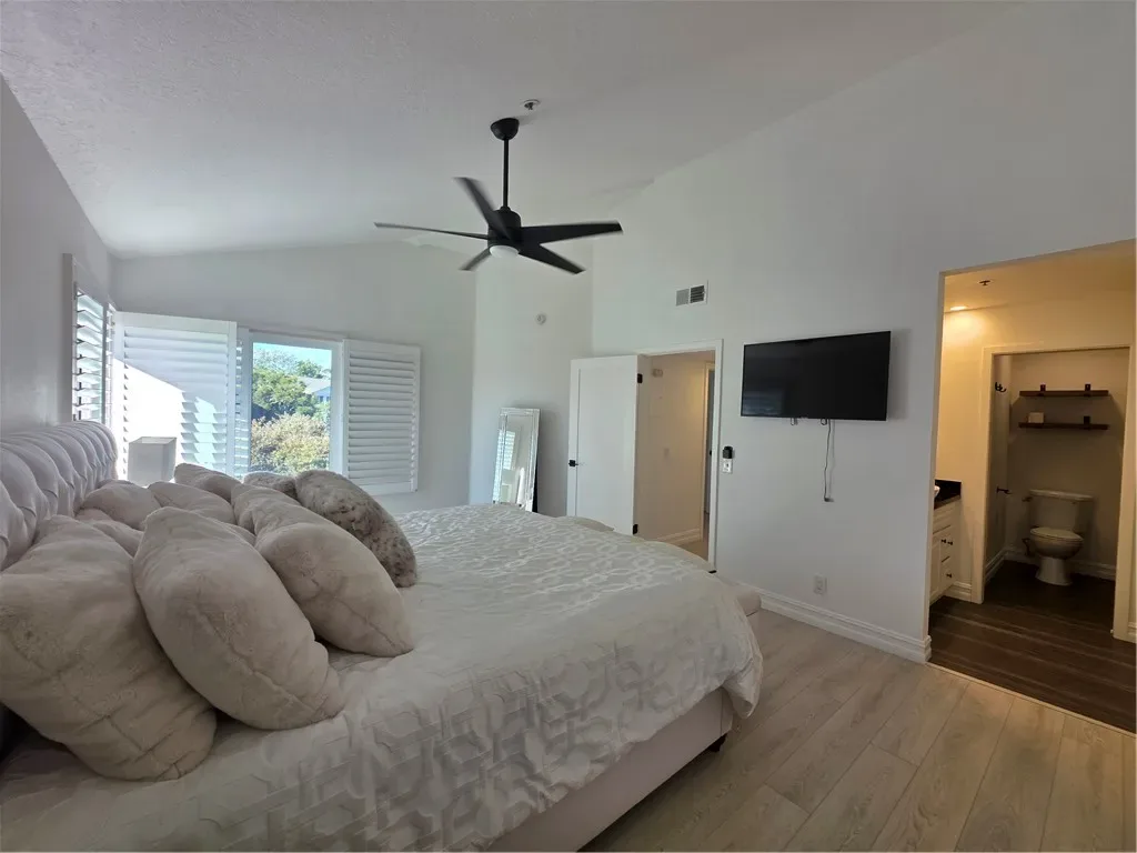 The primary suite is a private retreat, featuring a tastefully upgraded bathroom with a large walk-in shower and refined finishes. Every detail has been thoughtfully curated, including energy-efficient windows and an upgraded HVAC system for modern comfort and efficiency.