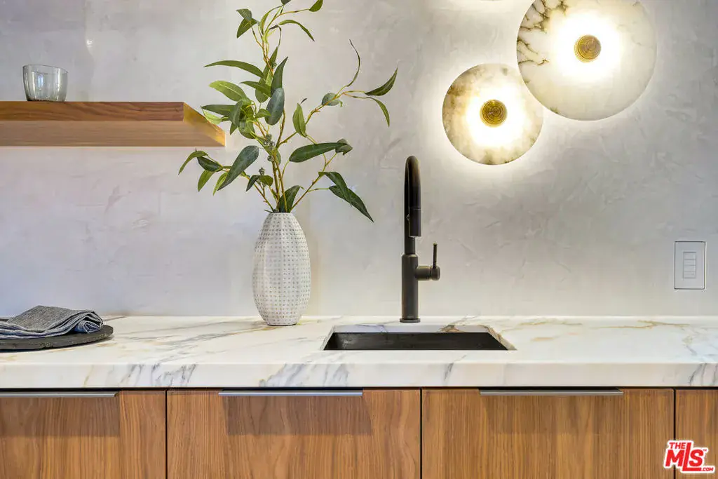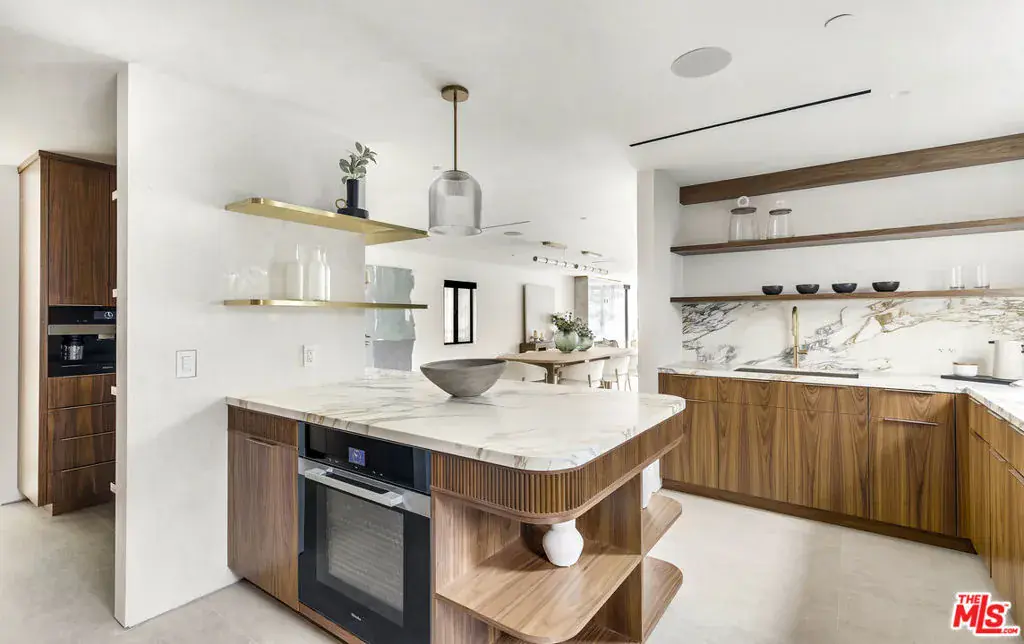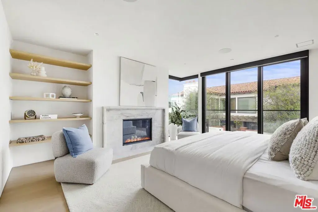 Just one block from the water on the Balboa Peninsula, this newly rebuilt coastal residence delivers a rare combination of architectural restraint, elevated materials, and effortless indoor-outdoor living. Completed in 2025, the home spans approximately 3,577 square feet with four bedrooms, four full baths, and two powder rooms, designed for both everyday comfort and hosting at scale. A calm, gallery-like palette sets the tone throughout, with limewashed walls, wide-plank hardwood floors, and rich walnut detailing creating a sense of warmth and quiet sophistication. The main level is designed for entertaining, anchored by a striking living space with a backlit Crystallo stone fireplace, walnut paneling, and refined glass partitions that allow light to move freely throughout the home. The kitchen and adjoining pantry blend function and beauty with walnut cabinetry, Arabescato Gold honed marble surfaces, and a serious appliance lineup that supports real cooking and effortless gatherings, including a Gaggenau cooktop, Sub-Zero refrigeration, a Miele oven, dishwasher, and built-in coffee maker, plus a Wolf hood. Upstairs, an additional living and bar area extends the home’s versatility with custom walnut cabinetry and Sub-Zero wine and beverage fridge, ideal for entertaining without bringing the whole party downstairs. Each bedroom suite is finished with spa-level baths wrapped in curated natural stone, custom vanities, and premium fixtures, while the primary suite stands apart as a true retreat with its own Crystallo stone fireplace, layered white oak detailing, and a serene bath finished in White Rhino and Thassos marble. Crowning the home is a rooftop deck built for year-round entertaining, with a full Thor outdoor kitchen featuring a pizza oven, sink, grill, and fridge, plus a gas firepit, integrated JBL speakers, and planters on a drip system. It’s an ideal setting for sunset dinners, relaxed evenings, and hosting under the coastal sky. Additional highlights include a fully integrated smart-home system with Lutron RA3 keypads, a two-car garage, and a location that places the water and vibrant peninsula lifestyle just outside your door. Modern, refined, and thoughtfully executed, 503 J Street offers a turnkey opportunity for those seeking a coastal home that balances design, comfort, and proximity to the water, whether as a primary residence or an elevated Newport Beach retreat.