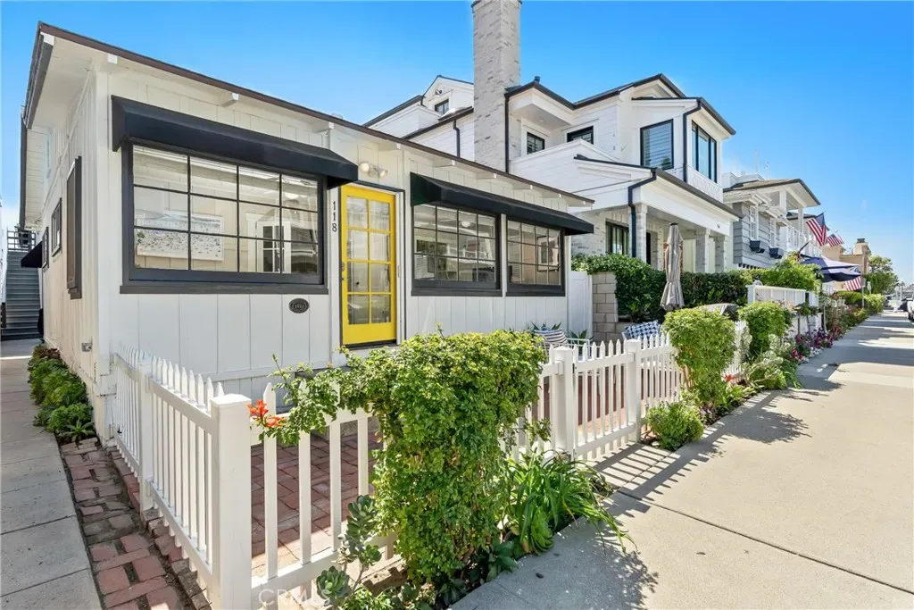 The front unit is a charming single-story 2-bedroom, 1-bath coastal cottage, featuring a spacious front patio framed by a white picket fence—ideal for relaxing, entertaining, and enjoying the quintessential Balboa Island lifestyle.