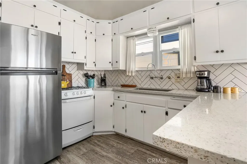 The rear unit offers a 3-bedroom, 2-bath split-level layout, complemented by a private 2-car garage, vaulted spatial flow, and functional separation for guests, tenants, or extended family.