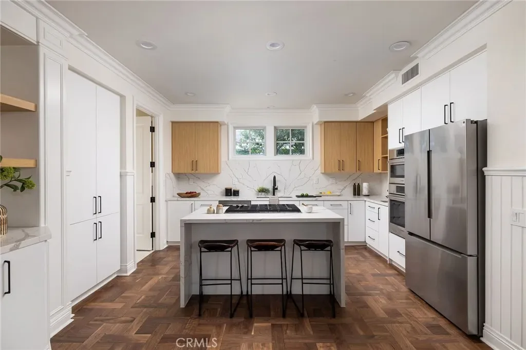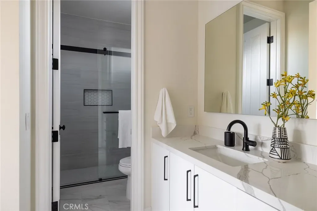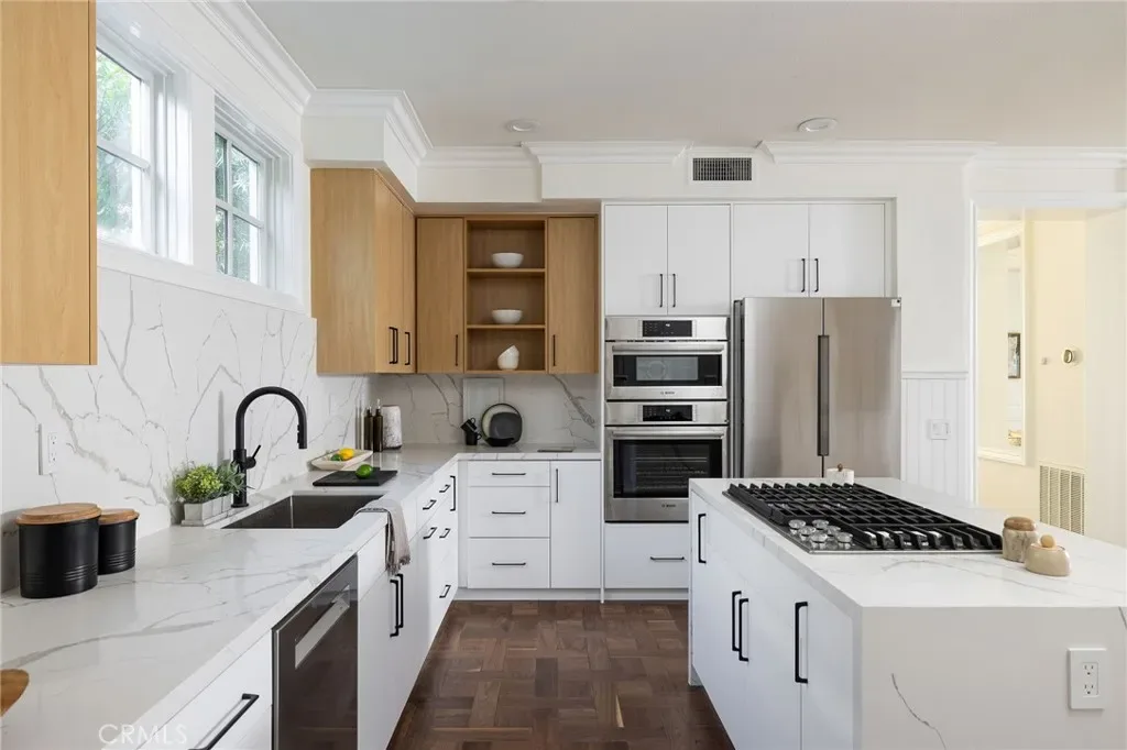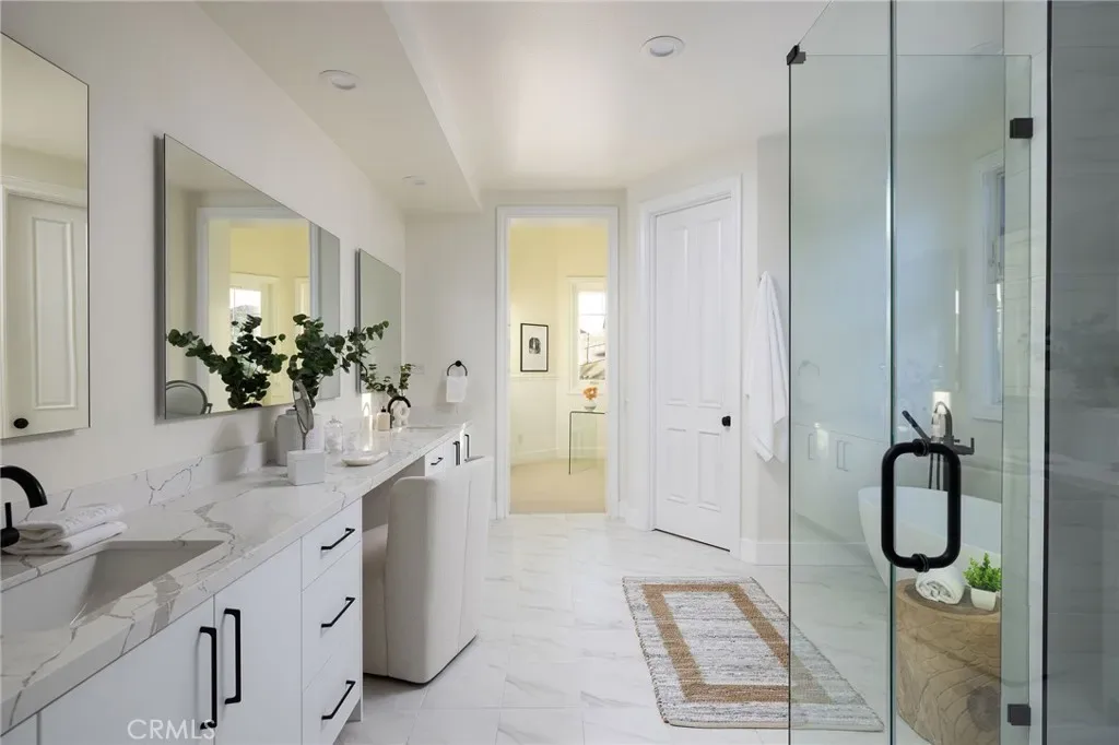Located within the guard-gated community of One Ford Road, this recently refreshed residence presents an exceptional opportunity to own in one of Newport Beach’s most prestigious and beloved neighborhoods. Thoughtfully enhanced throughout, the home features remodeled bathrooms and kitchen, refreshed parquet wood flooring, new carpet, and fresh interior paint, creating a bright, cohesive, and move-in-ready living environment. The well-conceived floor plan features a formal living room with fireplace and French doors opening to the front porch, along with a well-lit formal dining room ideal for gatherings. The gourmet kitchen is appointed with quartz countertops, modern cabinetry and brand-new appliances, and thoughtfully positioned adjacent to an al fresco dining area, allowing for seamless California indoor-outdoor flow. A laundry room is conveniently located just off the kitchen, enhancing everyday functionality. Upstairs, the extra-large primary suite serves as a private retreat, offering a spacious sitting area and an ensuite bath complete with dual vanity sinks, a soaking tub, walk-in shower, and walk-in closet. An oversized secondary bedroom provides exceptional flexibility as a guest suite, mother-in-law suite, or multipurpose living space and features an ensuite bath, walk-in closet and private staircase to the lower level common area. Two additional bedrooms share a separate full bathroom, offering both privacy and practicality. The stone-paved side yard offers additional outdoor space, providing a comfortable setting for year-round enjoyment. Completing the residence is an attached 3-car garage. Residents of One Ford Road enjoy 24-hour guarded gates and access to resort-style amenities including pools, fitness center, sport courts, clubhouse, and year-round community events, all set within one of Newport Beach’s most coveted guard-gated neighborhoods.
