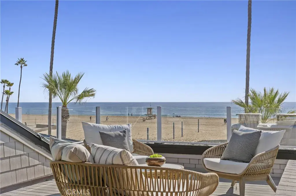 An extraordinary opportunity to own an oceanfront triplex perfectly positioned along the Newport Beach boardwalk, offering panoramic coastal views and an unmatched beachside lifestyle. The property consists of three spacious residences each thoughtfully designed with comfort, functionality, and coastal living in mind. The upper front residence is filled with natural light and features a living room with dramatic skylights, wood floors, and abundant storage. The kitchen includes stainless steel appliances, granite counters, and oceanview sightlines. A second living room showcases a fireplace with a masonry wall and hearth, vaulted beamed ceilings, a Juliette balcony, and sweeping beach and ocean views. The layout includes two bedrooms, a full bath with tub and shower, a laundry room with sink, a walk-in shower, and a spacious skylit walk-in closet. An upper loft with an office area leads to a rooftop deck ideal for enjoying coastal breezes and sunset vistas. The front lower residence sits directly along the boardwalk and includes a generous patio overlooking the sand. The living room features walls of glass capturing ocean panoramas and a fireplace with a masonry surround. The kitchen offers a breakfast bar and expansive counter space. Three bedrooms include a primary suite with an adjoining bath, providing excellent flexibility for guests or long-term use. The back residence offers a private retreat with a Dutch door entry, a wetsuit rack, a cozy dinette, and a living room with a fireplace. The bedroom includes an attached bath, and a balcony creates a peaceful outdoor escape. A central courtyard connects the homes, and an oversized three-car garage with a communal laundry room and additional bath completes this exceptional offering. Whether as a legacy property, income-producing asset, or multi-generational retreat, this oceanfront triplex combines location, lifestyle, and iconic boardwalk frontage. Positioned steps from Marine Park and minutes from dining, recreation, and Newport’s coastal amenities, it presents a rare opportunity to own a versatile, prominently located property, an offering seldom available on the Newport shoreline.