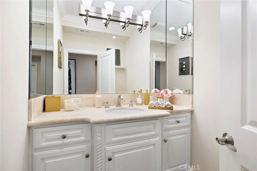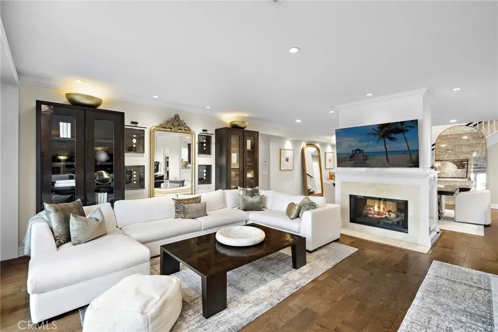 Designed for comfort, this home features four bedrooms, three with ensuite bathrooms. The main-level suite offers direct patio access and an adjacent private bedroom/office, while dual upstairs suites include one with a private balcony overlooking the fairway, perfect for morning coffee or a quiet sunset retreat. Additional highlights include abundant natural light, recessed lighting, custom closets, and thoughtful storage throughout. Every detail reflects a balance of elegance and livability, making this home an ideal primary residence or luxurious retreat in Newport Beach.