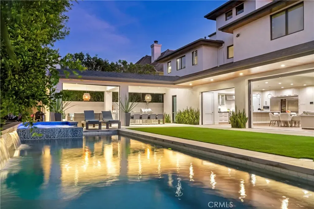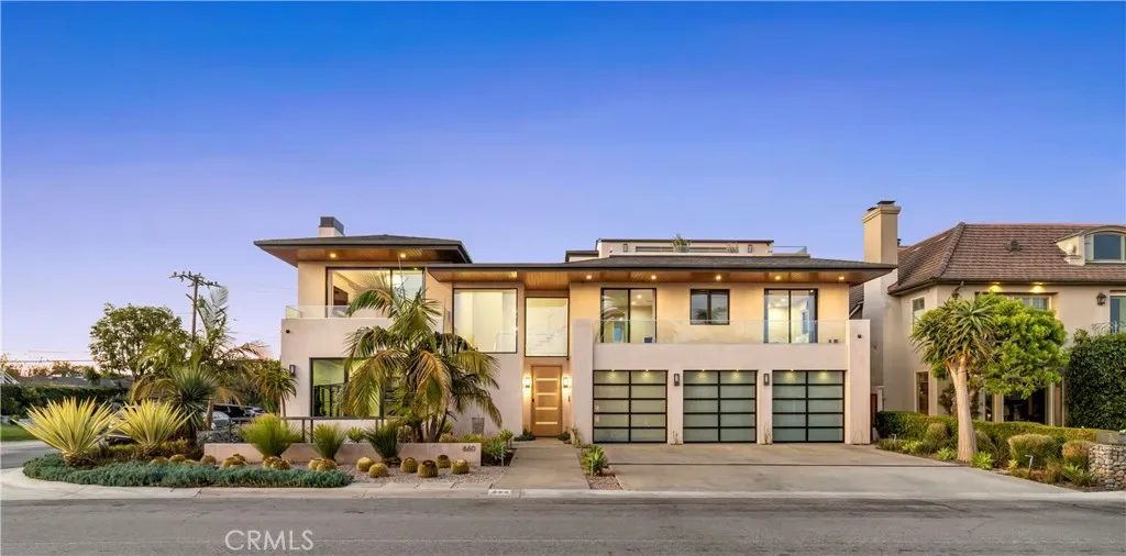 Commanding a premier corner position in Newport Beach’s exclusive Cliffhaven enclave, this residence represents the pinnacle of contemporary coastal architecture with a coveted address. Built in 2017 and spanning a rare 75-foot view-oriented frontage, 660 Kings Way offers sharp, trademark lines with an effortless yet large footprint. The experience begins in a formal foyer where 25-foot ceilings set a tone of understated grandeur. In the voluminous great room with living, dining, and kitchen areas, spectacular walls of moving glass vanish to unite the indoors with a sprawling, private exterior space. This outdoor retreat is anchored by an oversized loggia complete with a fireplace, full outdoor kitchen, and dining lounge for an outdoor entertaining experience that checks all of the boxes. Mature landscaping framing the pristine pool and spa only add to the backyard’s appeal. Designed for both grand-scale hosting and a high-caliber lifestyle, the home offers five comprehensive bedroom suites and seven baths. The third-level penthouse suite is a rarity and features a viewing deck, a wet bar, and wine refrigeration to complement taking in panoramic views of the Pacific, the Channel, and Newport Harbor. Technology is interwoven with style: a comprehensive Control4 system managing lighting, multi-zone audio, climate, and Luma security cameras make managing this large home a breeze. From the custom-curated interiors to the meticulously maintained exterior spaces, this residence is a rare turn-key opportunity within minutes to the world-class dining and shopping of Newport Beach.