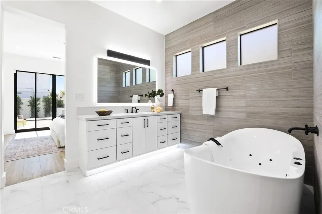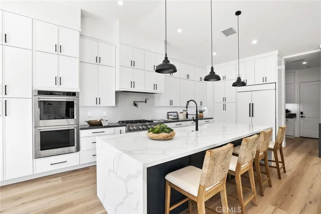Located in the Coveted Newport Beach neighborhood of Dover Shores this BRAND NEW CONSTRUCTED 2025 Residence is Thoughtfully Curated & Intelligently Designed with a Warm Modern Vibe blending Organic Charm with a Coastal Lifestyle. This completely reimagined Single Story Residence Offers 4 Bedrooms, 4.5 Bathrooms, MASSIVE 3 CAR GARAGE, and a Multi Use Creative Nook. The Attention to Detail & Quintessential California Cool Aesthetic are immediately noticed upon entry through the Oversized 9ft Dutch Door. Creating an iconic California indoor-outdoor flow Paradise is found in the heart of the home. The Great Room encompasses 20′ Slider, Vaulted Ceilings, Custom Woodwork Feature Walls, Surround Sound Speakers & Subwoofers, and Fireplace. Cohesively Blending into the Coastal Quiet Luxury Aesthetic of the home is the Entertainers Dream Kitchen, with an Abundance of Floor to Ceiling Cabinets, 48” Commercial Grade Gas Range w/ Custom Hood, Built in 48” Refrigerator, Built in Double Oven, Waterfall Quartz Island, Neutral Artisanal Mosaic Tile, & a Custom Bar Nook w/ Ice Maker & Wine Fridge. The Intelligent Design of this home is highlighted by the subtle hidden entrance to your Primary Suite Retreat. The Primary Suite Retreat will leave you well rested & calm with the coastal breeze coming through the 8.5’ Pocket Slider & into the Spa Like Primary Bathroom featuring a Restorative Shower Digitally Controlled 2 Rain Heads & 4 Body Sprays, Whirlpool Tub, Designer Tile and Spacious Custom Walk In Closet. Away from the Primary, the left Wing of the house features 3 En Suite Bedrooms all Curated with Cohesive Modern Designer Details, and an Office. The Peaceful, Private and Professionally Landscaped Backyard features Multiple Seating Areas, Turff, Built In BBQ Island & Grill, & the Custom Stone Artisanal Fire Pit. Additional Modern Day Upgrades include Modern Metal Roof, 2 TESLA POWER WALLS, SOLAR, Halo 5 complete Water Filtration System, Tankless Water Heater, Sound Deadening Insulation, Cat6 & Hardwired Wi-Fi extenders. Do not forget The Masterfully Designed, MASSIVE 823sqft 3 CAR GARAGE complete w/ Epoxy Flooring. Incredible Home…Come see this one in person!