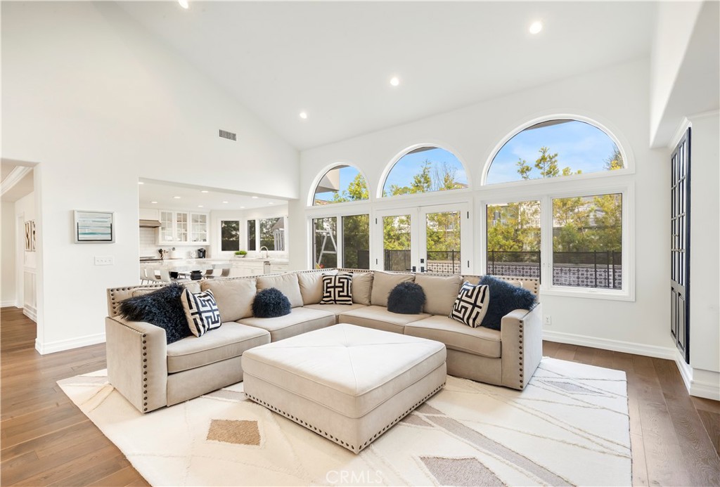 Located on the highly desirable inner loop of the Port Streets and within Phase 1 of the community, this custom residence offers close proximity to the greenbelt and a well-positioned setting within one of Newport Beach’s most sought-after neighborhoods. The home features light-filled interiors with vaulted ceilings, skylights, and wide-plank oak flooring throughout. A formal living room with fireplace and a separate dining area provide defined entertaining spaces, while the open-concept kitchen and family room serve as the central gathering area of the home. The kitchen includes porcelain countertops, a large center island, upgraded appliances, and custom cabinetry. French doors open to the backyard, creating a seamless indoor-outdoor flow. The private outdoor space includes a spool with waterfall feature, fire pit, and a generous grassy area suitable for a variety of uses. The floor plan includes a main-level bedroom with an oversized full bath, offering flexible use for guests or additional living space. All bedrooms are generously sized. Upstairs, the primary suite is situated on its own wing of the home and includes dual walk-in closets and a spa-style bathroom. Two additional bedrooms feature built-in desks and storage, and a spacious bonus room offers the potential to be converted into a fifth bedroom. A dedicated laundry room completes the upper level. Additional features include surround sound and a three-car garage with epoxy flooring. Port Street residents have access to community pools, clubhouses, sports courts, parks, and walking trails, along with convenient proximity to Andersen Elementary School, Fashion Island, local beaches, and John Wayne Airport.