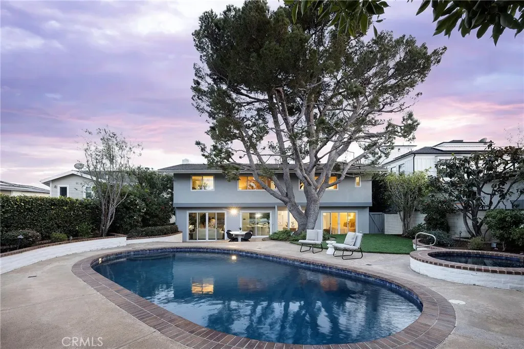 Positioned on one of the largest lots along sought-after Kings Road, this rare Newport Beach offering is defined by exceptional privacy, space, and views. From its elevated second level, the residence captures sweeping harbor, ocean, and Catalina Island views, a view that is increasingly rare in this coastal enclave. The multilevel home is filled with natural light, creating a bright and welcoming atmosphere throughout. A breakfast nook overlooks the backyard and pool, while the main level also features a primary bedroom with a walk-in closet, a spacious full bath with dual sinks, and a dedicated laundry room. Designed to embrace Southern California’s indoor-outdoor lifestyle, the grounds are anchored by an inground gunite pool and spa enhanced with new plaster and tile. A detached pool cabana with a changing room and a 3/4 bath adds resort-style functionality for entertaining or relaxed weekends at home. The backyard offers generous space to gather and host year-round. Upstairs, a second living area with vaulted ceilings, a wet bar, and picturesque views provides an inviting place to unwind. Three additional bedrooms and two bathrooms complete the upper level, including a main bedroom with an ensuite bath and walk-in closet. A two-car garage adds everyday convenience, while the expansive lot offers a level of space rarely available in the area, all just moments from the bay and nearby beaches. A rare opportunity to enjoy panoramic views and coastal living in one of Newport Beach’s most sought-after neighborhoods.
