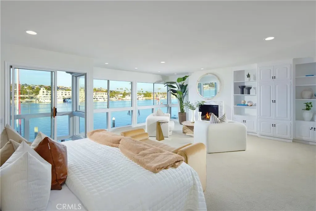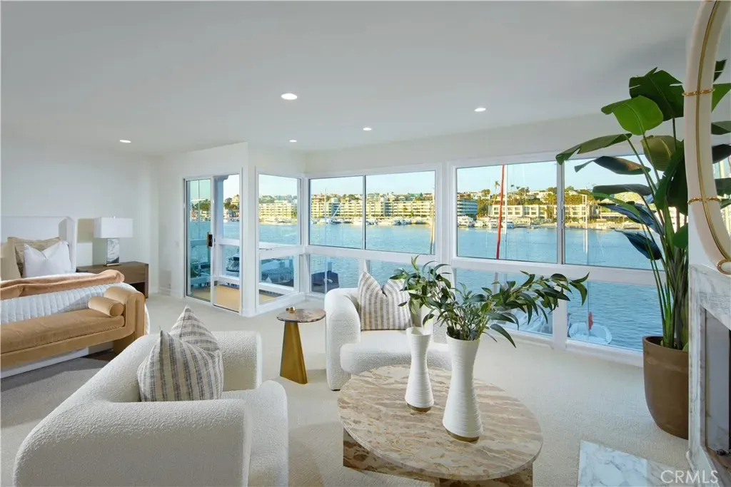 Panoramic views across the sparkling Lido Channel set the tone for this pristine waterfront residence, encompassing approximately 2,956 square feet and presenting a chic, transitional aesthetic suited for relaxed bayfront living. Light-filled interiors unfold across four bedrooms and three-and-one-half bathrooms, highlighted by a main level featuring a fireplace, sweeping staircase with wrought-iron railing, custom built-in shelving flanking the fireplace, and sliding glass doors that frame the ever-changing water views beyond. Stretching across the full 30-foot width of the property, an expansive deck invites effortless indoor–outdoor living and lively waterfront gatherings, flowing seamlessly to a private dock with additional seating space and room for your boat. White cabinetry, a built-in cooktop with range hood, quartz countertops, and top-of-the-line appliances define the well-appointed kitchen, complemented by a tray ceiling with recessed lighting and an inviting breakfast nook. A main-level bedroom with en-suite bath provides convenience and flexibility for guests or multi-generational living. Three bedrooms occupy the second level, including one currently configured as a bonus room with French doors opening to a private balcony. Retreat-like comfort defines the primary suite, where a fireplace, oversized windows, and sliding glass doors lead to a private balcony with far-reaching channel views. Spa-inspired design continues in the primary bath with dual sinks, built-in seating, a soaking tub, and a walk-in shower. Additional highlights include a dedicated upstairs laundry room, fresh interior paint, new carpet, and a two-car attached garage. Located on beloved Lido Isle, residents enjoy access to the community clubhouse, tennis courts, dog park, and exclusive yacht club opportunities—creating a truly special coastal lifestyle.