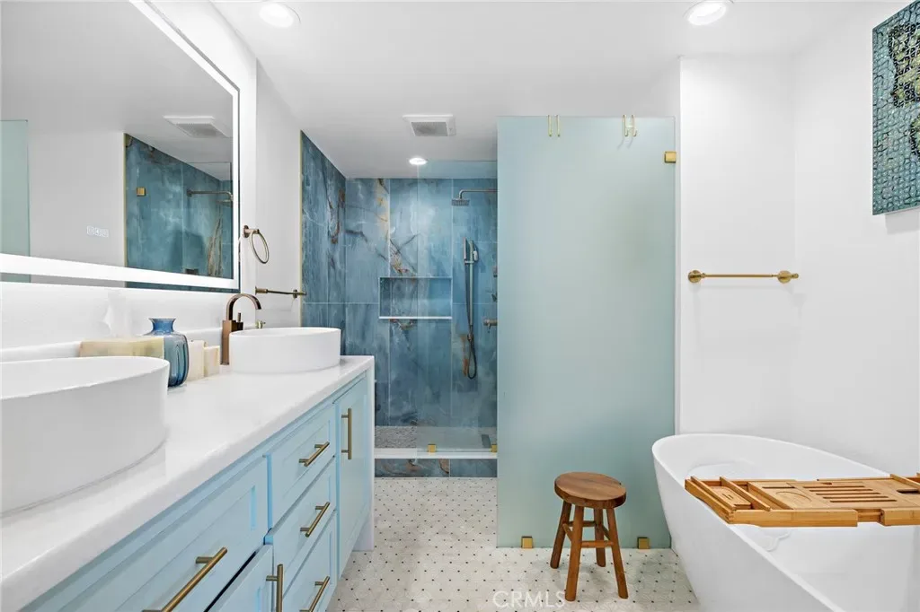 12 Encore Ct, represents one of Newport Crest’s most desirable and largest floorplans, an end-unit, 4 bedroom, 2.5 bath home with approximately 1,903 sqft, three outdoor decks, and modernized interior features. The property has been extensively redesigned throughout, with a complete kitchen rebuild, fully remodeled baths, new flooring, new paint, upgraded systems, and a finished two-car garage with significant storage. The main level offers a connected living, dining, and family room layout with vaulted ceilings, a custom gas fireplace mantle, and direct access to two separate decks. Natural light flows effortlessly throughout the home. A dedicated home-office nook sits on the first floor, providing a useful workspace separate from the primary living areas. The kitchen was rebuilt from the studs up and finished with custom cabinetry, marble counters and waterfall island, designer fixtures, and paneled Dacor appliances including a 36″ French door refrigerator, six-burner gas range with griddle and professional oven, paneled dishwasher, and a new farmhouse sink. The space integrates cleanly into the dining and family room spaces, creating an efficient day-to-day workflow. Upstairs, all four bedrooms include built-in storage. The primary suite features a large walk-in closet, a fully remodeled bath with double vanities, marble counters, LED dimmable mirrors, a large soaking tub, designer filler, a rebuilt shower with body sprays and bench seating, and its own private deck with ocean-views. The guest bath has been completely redone with marble finishes, a new vanity, and a tiled shower. The powder room includes a new marble vanity and updated fixtures. The finished two-car garage includes epoxy flooring, new paint, an extra-large LG washer and dryer, 240V/30A EV charging, and access to an oversized walk-in storage area with built-in shelving. Smart-home upgrades include dimmable LED lighting, smart switches, a Nest thermostat, smart lock, and CAT-6E wiring with optical fiber delivering speeds up to 5 Gbps. A new energy-efficient water heater with recirculating pump is also installed. Newport Crest Residents have access to the community’s pool, spa, clubhouse, tennis courts, and direct access to Sunset Ridge Park. The property is close to the beach and daily conveniences, though the core value is the home itself, its layout, its storage, and the modern quality of its renovation. Redesigned for function and style, 12 Encore Ct. is truly one of a kind!