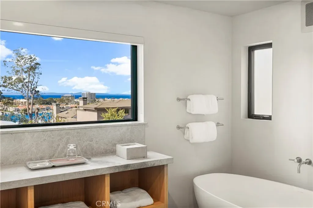Perched atop Cliff Drive in Newport Heights, this newly rebuilt from-the-studs masterpiece delivers sit-down ocean views from every level, with breathtaking backdrop of the Pacific Ocean, Catalina Island, and Newport Harbor, perfect for watching the boat parade. This rare Newport Beach offering combines modern elegance with the loft-like sophistication of Manhattan Soho in a single-family home. Boasting 5 bedrooms and 5.5 bathrooms, including a private ADU, and dual office potential, the home is designed to maximize light, views, and livability. Refined natural materials and soft, timeless tones create a warm, elevated atmosphere, with multiple living and entertaining spaces to enjoy dramatic coastal backdrops. The main level features a chef’s kitchen with Wolf and Sub-Zero appliances, living and dining room, two bedrooms and bathrooms, and an ocean-view office. The second level offers a serene primary suite with panoramic views from both bedroom and bathroom, an additional bedroom and bath, secondary living space, and access to the ADU. The ADU provides a full kitchen and studio-style living, perfect as a private office, guest suite, kid’s play or media room, or in-law quarters. The third-floor loft with bath and expansive deck offers some of the best views Newport Beach has to offer. Outdoor amenities include a dry sauna, ocean-view decks, and an outdoor shower, seamlessly extending indoor-outdoor living. Located minutes from Lido Village and within walking distance to top PCH restaurants, this home presents a rare opportunity to experience upscale coastal living in one of Newport Beach’s most desired neighborhoods.