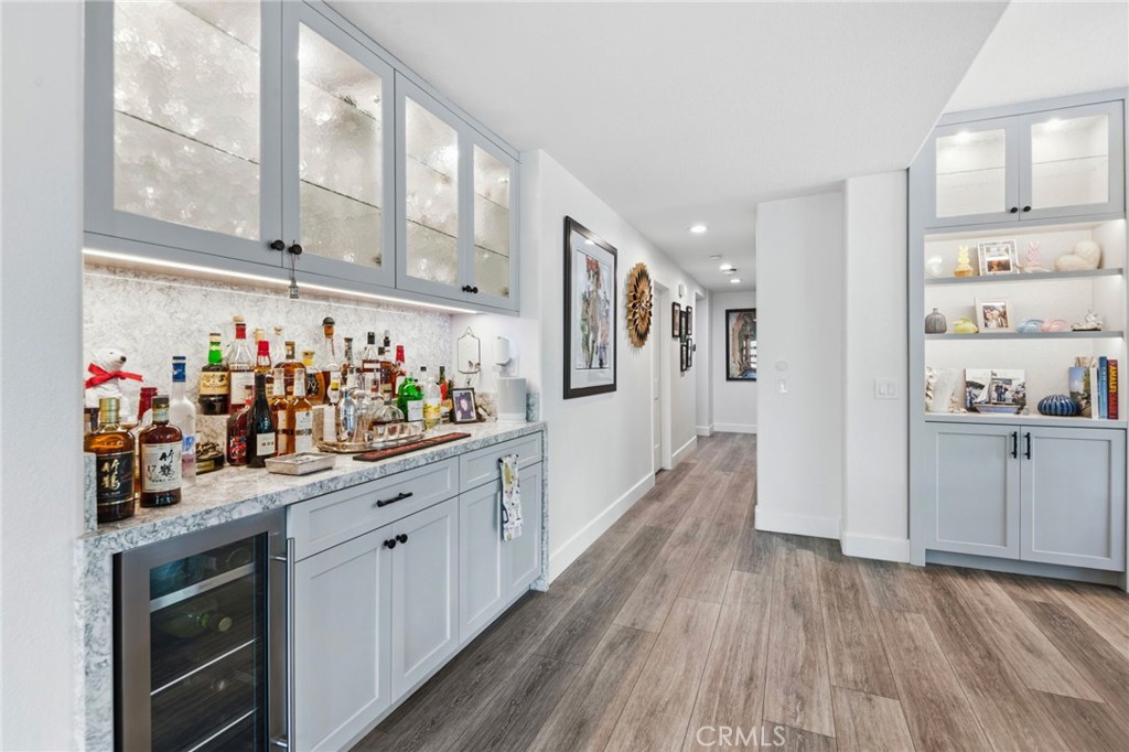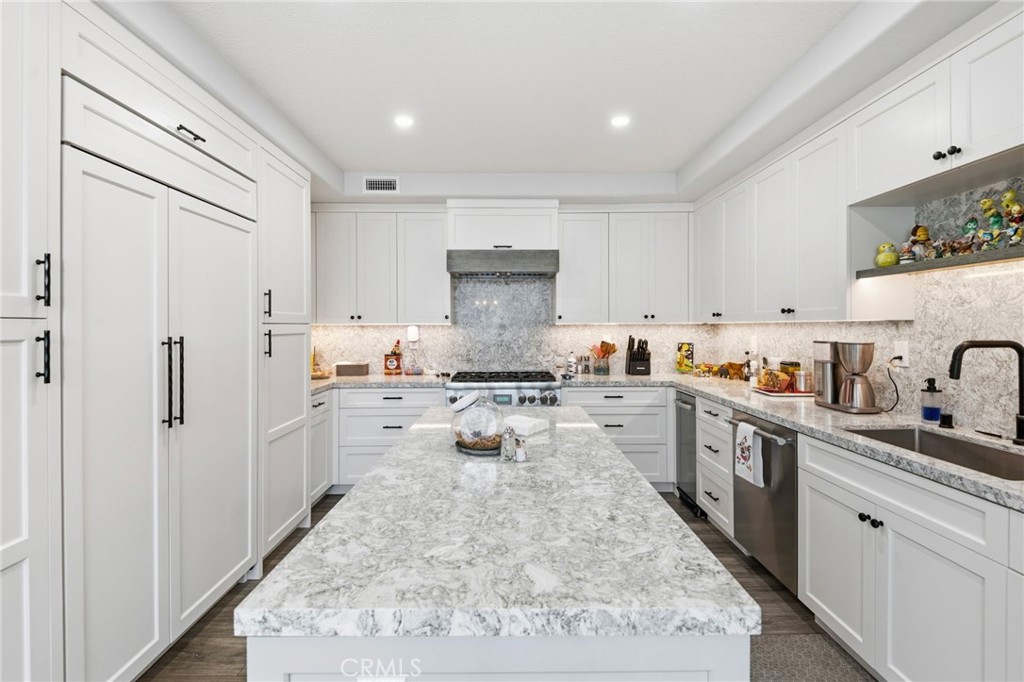 Welcome to 51 Seabrook Cove — a beautifully reimagined single-level retreat nestled in the prestigious guard-gated community of Sea Island in the heart of Newport Beach. Set on a coveted corner lot, this fully remodeled lower unit offers an exceptional blend of luxury, comfort, and modern convenience – spanning approximately 2,600 square feet with 3 bedrooms, 3 bathrooms, a dedicated office, and a sunroom bathed in natural light. The open-concept living areas are designed for both elegant entertaining and everyday ease. The spacious living room anchors the home with a fireplace framed by Italian porcelain, flowing seamlessly into a formal dining room complete with custom built-ins and a wet bar with wine fridge.The chef’s kitchen has been thoughtfully reconfigured and features Cambria Quartz countertops, custom cabinetry by Green Wish Concept, and a full suite of premium appliances — Sub-Zero refrigerator, Thermador stove, and Thermador dishwasher. The primary suite is a true sanctuary, offering a fireplace, his-and-her closets, and a spa-inspired en-suite bath with Porcelanosa tile, Cambria Quartz counters, a steam shower, freestanding jetted soaking tub, and Kohler fixtures throughout. Additional highlights include LVT flooring, remote-controlled Hunter Douglas shades, a tankless water heater, new AC unit with Ecobee smart thermostat, a fully remodeled laundry room with custom cabinetry, and a new garage door with MyQ remote access. Step outside to a wrap-around private yard featuring all-new landscaping, porcelain tile, and designer lighting – centered around a luxurious 8-person in-ground jetted spa with waterfall, controlled via the Pentair remote app. Perfect for relaxing evenings under the stars. A Ring security system with cameras provides added peace of mind. As a resident of Sea Island, enjoy 24-hour guard-gated security and resort-style amenities including two pools and spas, two tennis courts, and a clubhouse — all just minutes from Balboa Island, Fashion Island, and the scenic Back Bay.
