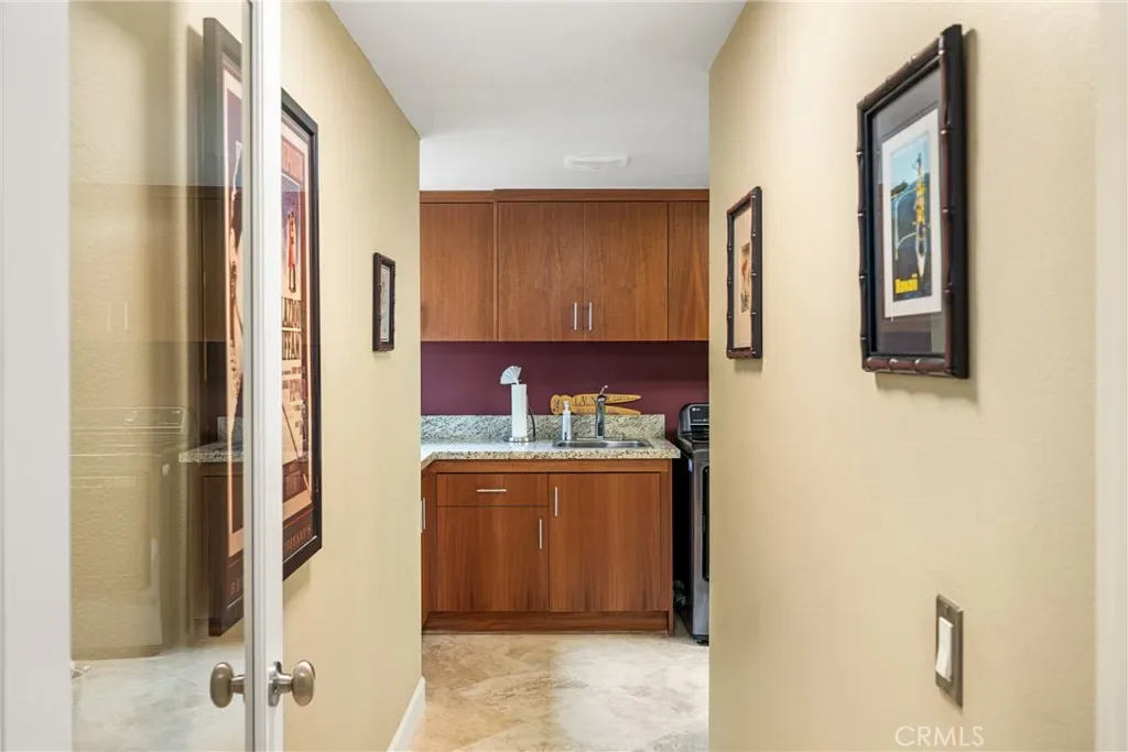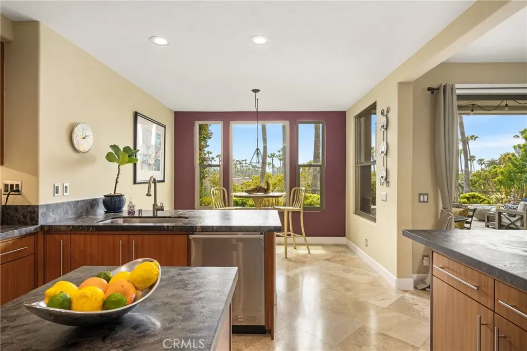 Welcome to 27 Seabrook Cove, a single level lower end unit in the 24 hour guard gated community of Sea Island, Positioned in a prime cul de sac location. As you enter this one level, 2 Bedroom 3 Bath Lower end unit you will immediately be taken back by the sweeping views that fill the home with natural light throughout the day. The main living areas are oriented toward the view, framed by two 8 foot sliders that open to a wraparound tropical yard designed to take full advantage of the setting and fine finishes. Upgrades include; African mahogany custom made cabinetry throughout, Built in Dry bar with wine fridge, Viking cooking appliances, built in Thermador refrigerator, “leather” finish counter tops, upgraded dual Pane windows, two 8-foot sliders in the main living area, and almost nine-foot ceilings in most areas. The kitchen has been modified and a wall has been removed to create a more open feel (all permitted and HOA approved). The property has three full updated bathrooms and two bedrooms, plus an office, which may be a third bedroom. The primary and secondary bedroom are en suite. There are two gas fireplaces to enhance a cool evening or perhaps a rainy day. The primary bedroom has four windows looking out on the view, a fireplace, two walk-in closets outfitted with organizers, dual vanity, a large shower and separate tub, rounding out with a commode room. Secondary bedroom with private outdoor patio. Oversized, separate laundry room with sink and storage cabinet space. HOA amenities include Pool, Spa, clubhouse, and tennis courts. Strategically Located within walking distance to Newport dunes, Back Bay, Balboa Island, and Fashion Island. Don’t hesitate to take advantage of this property that has it all, one of the best locations, upgrades, and amazing layout!