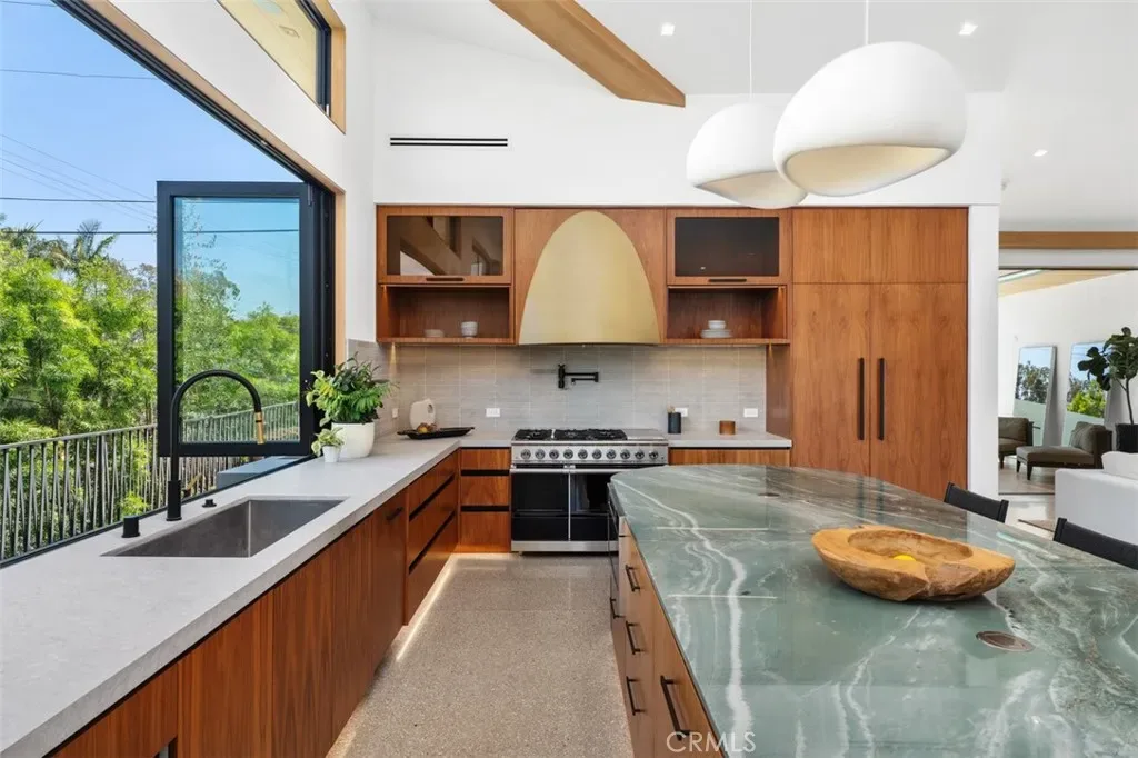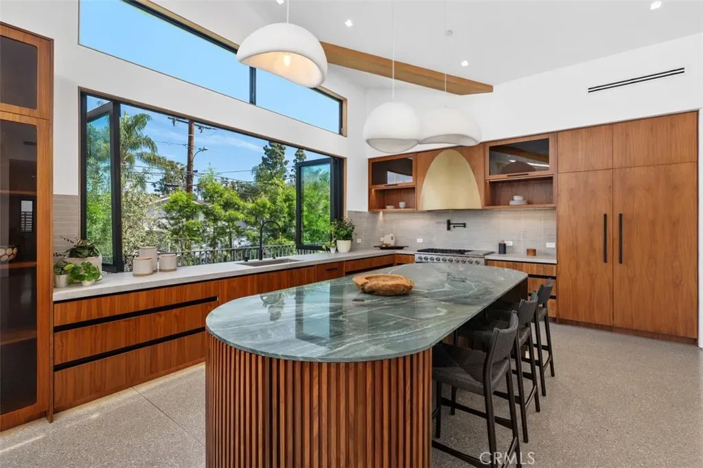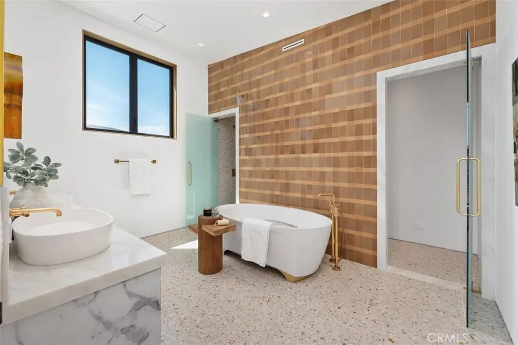 Upper Back Bay meets luxury. This stunning newly built, smart home was thoughtfully designed to bring the elements of the Back Bay indoors while offering modern amenities. Every aspect of its construction and superb design embraces the natural beauty of the Back Bay and honors Native American history. This care is represented in the use of natural materials like wood and stone, earth tones, and shades of green. Each thoughtfully curated detail embraces the beauty of the Back Bay. As you enter the home you are greeted by soaring ceilings, a large open space filled with natural light and serenity. Each detail is intentional, from the custom natural wood beams shaped like an arrow pointing to where the sun sets in the home; to the Terrazzo flooring with seashell specs.The open concept design allows for effortless indoor/outdoor living. The gourmet kitchen, a central part of the home boasts custom walnut cabinetry, a beautiful, oversized island with a bespoke Italian marble countertop in perfect shades of green, and Hestan appliances. The spacious dining area has a built in Miele coffee station and a built-in wine cooler for added convenience. The grand room features a bespoke fireplace with automated sliding door for seamless indoor-outdoor living. The main level includes 3 bedrooms with en-suites plus a guest bathroom, all finished with custom cabinetry, lighting, and Italian marble/ tile. A beautiful oak wood staircase with custom, handrails hand wrapped in luxurious, tan leather leads to the second level. Upstairs offers two spacious primary suites, walk in closets with one fit for a true fashionista, equipped with a laundry chute; expansive en-suites with luxury details including brass fixtures, handmade Italian tile/marble, soaking tub, steam shower. The multiple outdoor spaces can be accessed effortlessly. The focal point is the pool with a Zen waterfall. Adjacent to the pool you will find a built-in seating area with an outdoor fireplace, outdoor shower, and an entertainer’s dream outdoor kitchen. Additional design features include a sound system, a three-car garage with epoxy flooring, a security system, and all windows and sliding doors are prewired for retractable shades. This spectacular home situated in an oversized corner lot is a short walk to the Upper Back Bay where you can enjoy hike/walk trails, cycling and a short distance to world renowned shopping and dining. This is not just a home but a sanctuary where nature is reveled and embraced.