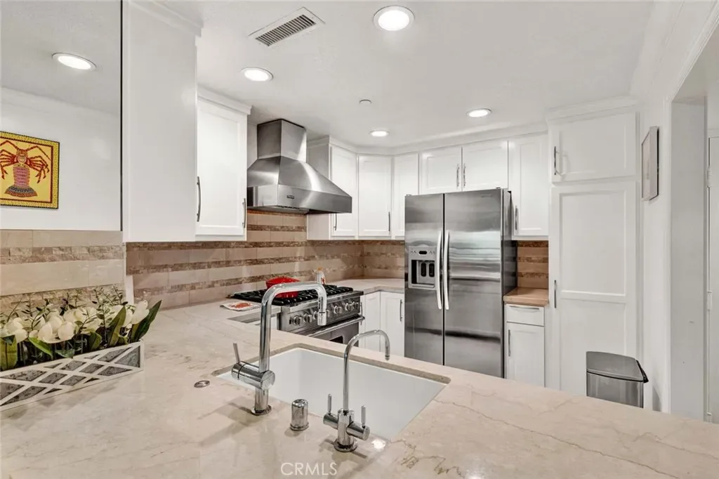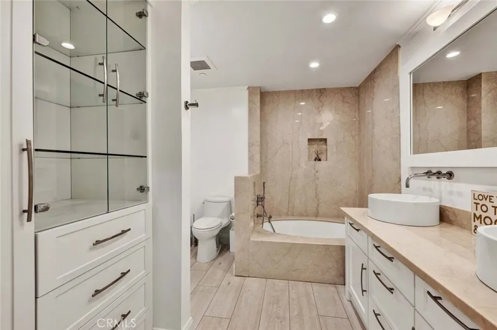 Welcome to your sophisticated coastal retreat in the heart of Newport Beach, located within the exclusive 24-hour guard-gated enclave of Villa Balboa. This gorgeous 1,320-square-foot, 2-bedroom, 2-bathroom home has been fully remodeled for the discriminating buyer, featuring a gourmet kitchen with custom shaker cabinetry, pull-out drawers, a dedicated spice rack, and elegant honed natural stone countertops. Professional-grade stainless steel appliances, including a Wolf range, refrigerator, and dishwasher, complete the space. Throughout the home, luxury vinyl flooring provides a modern, low-maintenance aesthetic that flows toward the outdoors through Milgard dual-pane windows and three sliding glass doors. Both generously sized bedrooms serve as private sanctuaries, outfitted with sleek built-in floating dressers and nightstands, while wardrobe closets by California Closets offer an exceptional amount of storage. The primary suite is perfectly designed with a walk-in closet and custom built-in cabinetry positioned between the bedroom and the ensuite bath. The primary bathroom features a relaxing bathtub, a beautiful glass-front display cabinet with glass shelving, and additional lower drawer storage. The second bedroom is equally impressive with plentiful wardrobe space and direct access to the second bathroom, which features a shower and a hallway entrance for guest convenience. A private balcony spans the length of the living room and both bedrooms, offering a seamless indoor-outdoor flow to enjoy the coastal breeze. The Villa Balboa lifestyle includes unparalleled amenities such as two sparkling pools and spas, three pickleball courts, a tennis court, a fitness center, and a clubhouse with a separate conference room and barbecue area. This residence includes one secure underground parking space and a private storage cabinet. Located just minutes from world-class beaches, Lido Marina Village, fine dining, and the vibrant Balboa Peninsula, this home offers the ultimate Newport Beach dream. Please note that this is a probate sale with full authority and no court confirmation required. While the property is in excellent condition, it is being sold in its current “as-is” state, with no repairs or credits to be provided.