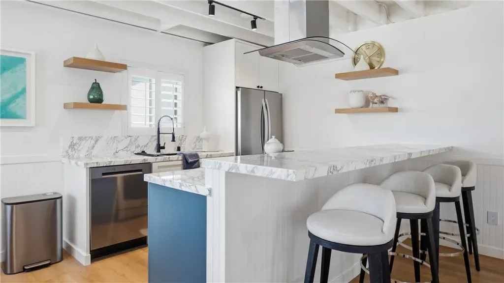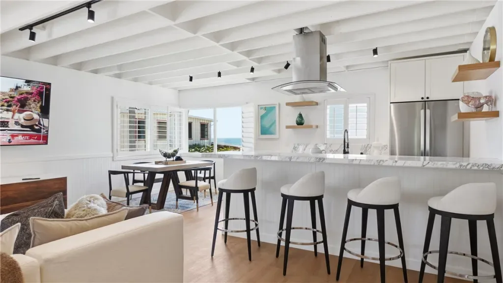This charming cottage has been completely updated with brand-new bathrooms and a beautiful kitchen overlooking the ocean. Fall asleep to the sound of the waves and enjoy effortless coastal living. One bedroom is currently staged as a living room, offering flexibility while still counted as a bedroom.