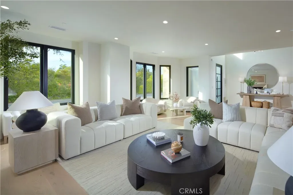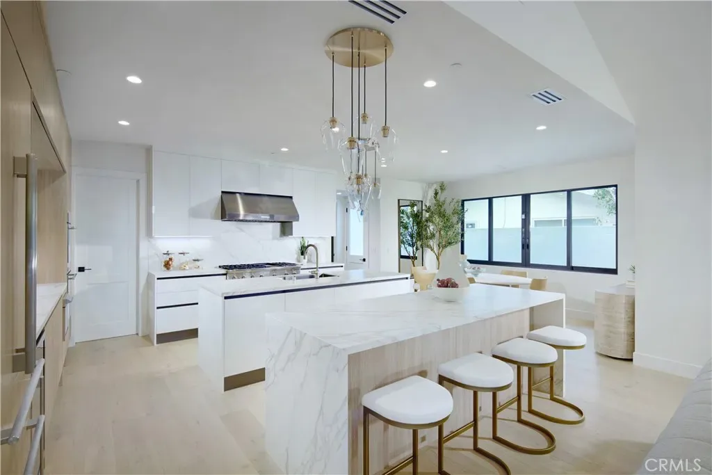 On a quiet interior street, where contemporary architecture meets coastal serenity, this virtually all-new home emerges from a full down-to-the-studs renovation completed in 2025. Thoughtfully redesigned with a modern coastal sensibility, the residence offers approximately 5,206 square feet of refined living on a generous 9,000 square foot lot in Dover Shores. Warm European-style wood floors, sculptural lines, and newly introduced architectural volume shape the interior experience from the moment you enter. A fully re-envisioned culinary space takes center stage with dual islands—one for prep, one for gathering—wrapped in elegant quartz surfaces. A Thermador six-burner range, Thermador microwave, two dishwashers, built-in refrigerator, and custom cabinetry elevate both function and style. Open sightlines connect the kitchen to the dining and great room spaces, creating an effortless flow ideal for hosting and daily living. Expansive indoor spaces open wide to a refreshed, ultra-private outdoor haven framed by mature hedging. A new outdoor kitchen, an enhanced saltwater pool, elevated spa, cascading water features, fire lounge, and multiple covered patios shape a resort-like environment that invites both relaxation and vibrant entertaining. Downstairs living includes two en-suite bedrooms, one with backyard access, and an inviting entry, all positioned with thoughtful intention. Upstairs, the primary suite unfolds as a serene escape, anchored by a thoughtfully modernized bath with dual sinks, a soaking tub, a generous walk-in shower, and a dedicated vanity area. Two walk-in closets and vaulted ceilings finish the space with comfort and ease. Two additional secondary bedrooms and layered designer finishes echo the home’s elevated character throughout. Dual HVAC, recessed lighting, and a spacious three-car garage add everyday practicality. Situated moments from 17th Street’s dining and shopping, Castaways Park, Newport Aquatic Center, Mariners Park & Library, and top-rated Mariner’s Elementary, the location captures Newport Beach living at its most balanced and convenient.