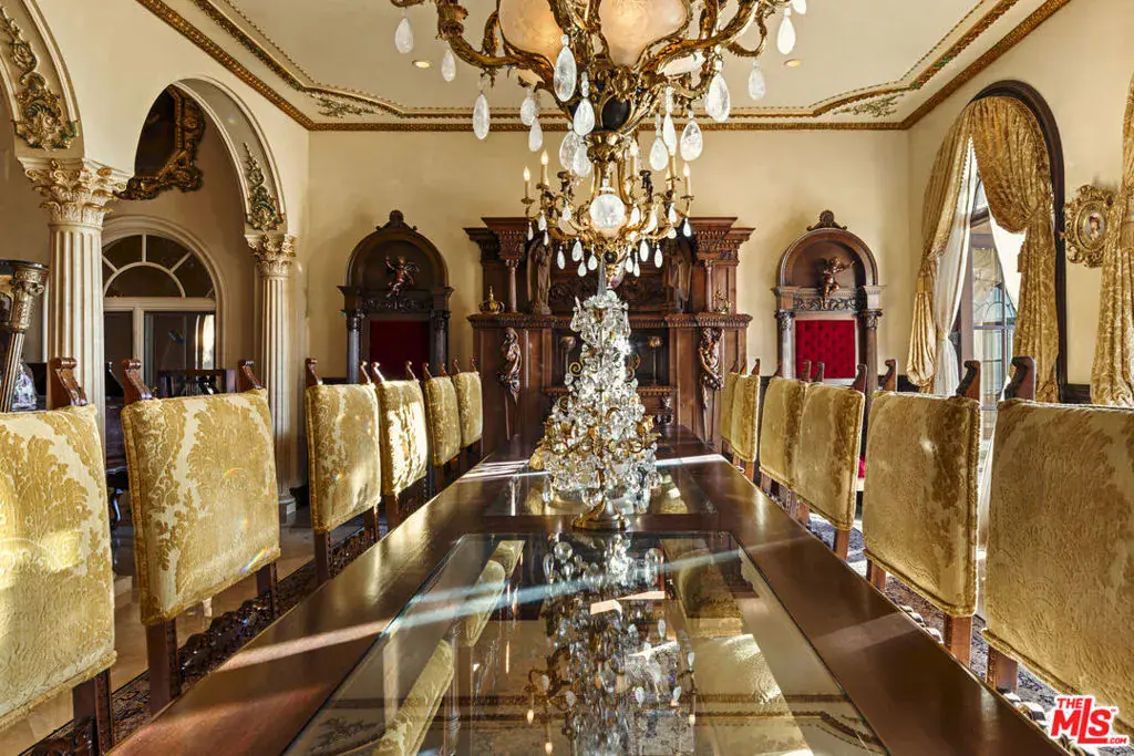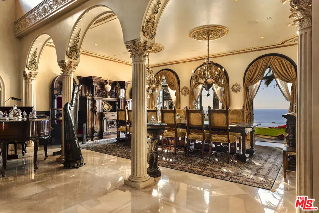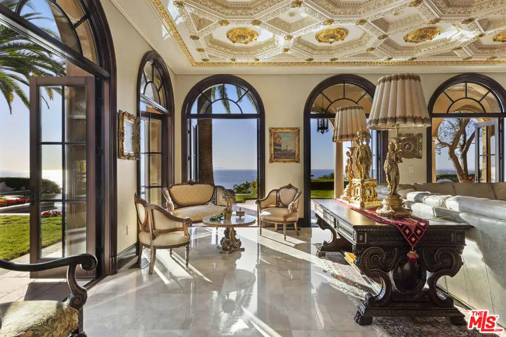 Chateau Soleil is a French chateau-inspired masterpiece perched atop the hills of Newport Coast within the ultra-exclusive Crystal Cove enclave. This extraordinary estate commands sweeping ocean views stretching from the peninsula to Catalina Island. Custom-built with uncompromising attention to detail, the residence showcases unparalleled craftsmanship and finishes throughout. Imported stonework, rare materials, and one-of-a-kind antique pieceseach thoughtfully curated from around the world, including every chandelier define the home’s timeless elegance. Arrival is nothing short of cinematic, greeted by two mature olive trees and a manicured garden adorned with classical water features that guide you to the grand entrance. The opulent foyer opens to a breathtaking living room crowned by a dramatic 28-foot ceiling and illuminated by a palatial Louis XV Baccarat chandelier, crafted after a model by renowned French sculptor Jacques Caffieri. A grand staircasean exquisite replica of the Titanic railing with gold-plated detailing leads to the second level. Also on this floor, the office is a true work of art, featuring hand-carved mahogany wall panels and a richly coffered ceiling. The formal dining room centers around a magnificent 15-foot table accommodating up to 12 guests and opens to the expansive backyard with dramatic ocean views. The world-class kitchen is designed to Michelin-chef standards, outfitted with dual oversized refrigerators, Viking appliances, a La Cornue gas range, and an impressive center island. Adjacent is a casual dining area accented by a stunning Murano chandelier. The spacious family room embodies European elegance with a massive fireplace, ornate coffered ceilings, and multiple French doors that open onto the enchanting backyard. The residence offers four bedrooms, including one on the main level and three upstairs. The expansive primary suite is a private sanctuary featuring a sitting area with an elegant fireplace, French doors opening to a generous private terrace overlooking the pool and sweeping ocean views, and a lavish en-suite bathroom with a soaking tub, separate shower, and dual walk-in closets. An elevator descends to the lower-level entertainment floor, complete with a game area, full bar, and spa retreat featuring a steam shower and sauna. The neoclassical private cinema is a masterpiece of its own, adorned with red silk walls and rare figural torchres by Antoine Durenne, Paris, circa 1900. The backyard is a serene oasis with an infinity-edge pool and integrated spa, expansive lawn, romantic seating areas, and a fire pitall framed by breathtaking coastal vistas. The subterranean garage can accomodate 5-6 cars. The scale, craftsmanship, and architectural pedigree of Chteau Soleil make this estate a truly one-of-a-kind masterpiece, offering an unparalleled lifestyle of elegance, privacy, and world-class luxury.