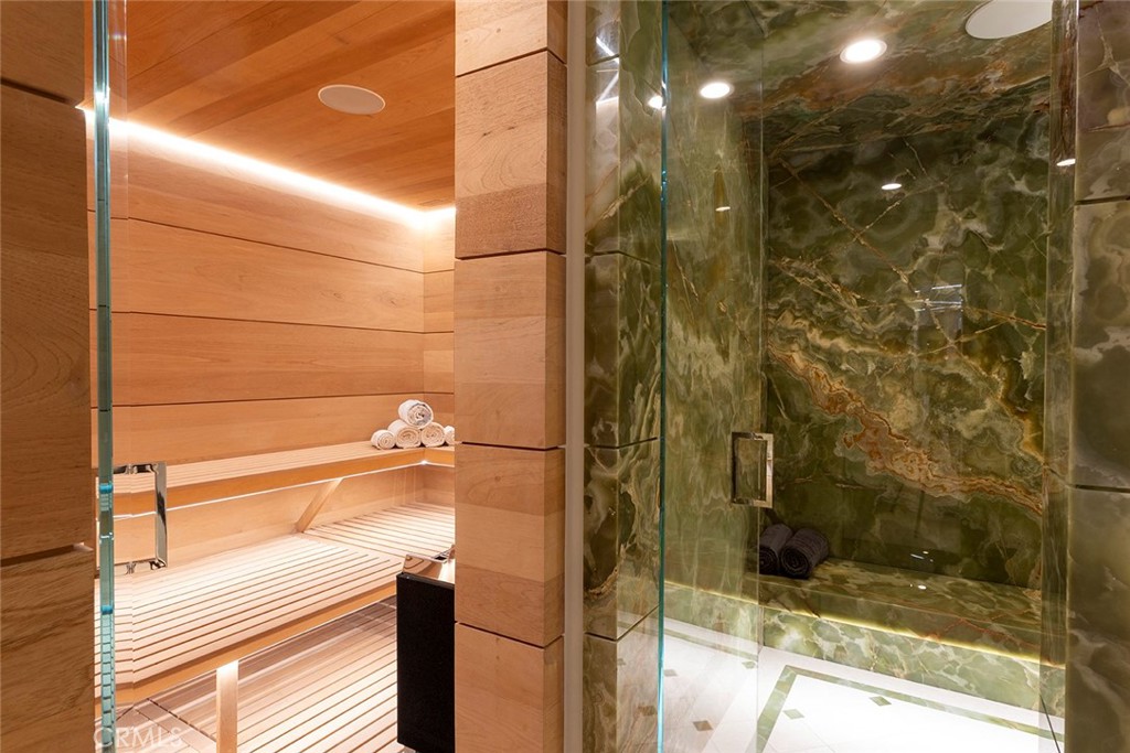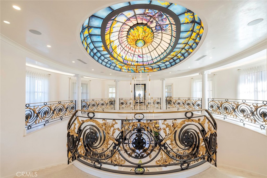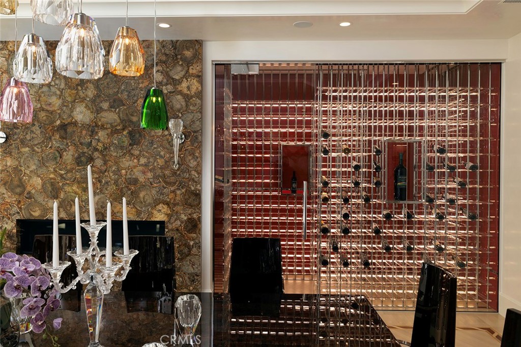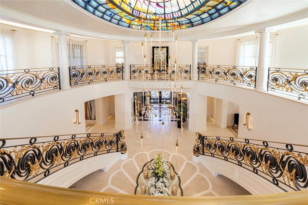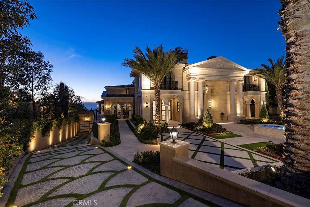 Commandingly perched atop one of Southern California’s most desirable parcels of land, this custom designed crown jewel securely nestled at the pinnacle of Crystal Cove offers unobstructed views of The Pacific Ocean, Catalina, white water, Newport Harbor, Palos Verdes all the way up to Los Angeles. Resting atop a 26,600 sqft parcel, this 15,500 sq ft. estate with 3,640 sqft of decks and loggias spared no expense with the materials selected including bespoke chandeliers, interior and exterior white Jordanian marble floors and floor to ceiling onyx walls. An elaborate foyer showcases the only glass dome of this magnitude in a residence in the United States. Additional first floor areas include a dramatic office/library with spectacular ocean views, formal and informal living rooms with white oak flooring, en-suite guestrooms, a grand formal dining room with expansive wine cellar, gourmet SieMatic chef’s kitchen, a second fully equipped prep kitchen and an outdoor kitchen. The primary suite is a grand, oversized room enhanced with custom cove ceilings, kitchenette, fabricated walls and gorgeous ocean views. There are two enormous spa-inspired bathrooms with heated marble floors, Kohler Numi toilet and bidet, oversized glass showers and a Jason soaking tub. The two walk-in closets are exceptional and reminiscent of the finest luxury department stores. The property provides an impressive entertaining pavilion on the subterranean level equipped with a state-of-the-art theater, an impressive entertaining bar, a Life Fitness gym, and a zen massage room with steam shower, dry and wet saunas that create an oasis to focus on health and wellbeing. A climate controlled 3725 sqft 10 car garage with car turntable can easily convert to an event space and discotheque. Playing off the panoramic ocean views lies a one-of-a-kind mosaic custom pool masterfully crafted by UK based artisans, aptly named “Sunrise to Sunset.” Handmade tiles that have been meticulously assembled to create a stunning, functioning, aquatic piece of art. Your very own resort to enjoy sunrises from the vast, perfectly manicured backyard. Sunsets are even better. Magical evenings can be enjoyed walking through the impressive sculpture gardens. Perfectly planned outdoor seating and dining vignettes have been cleverly carved out along the property providing majestic vistas as the moon rises and dances on the Pacific Ocean.
