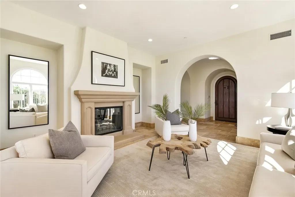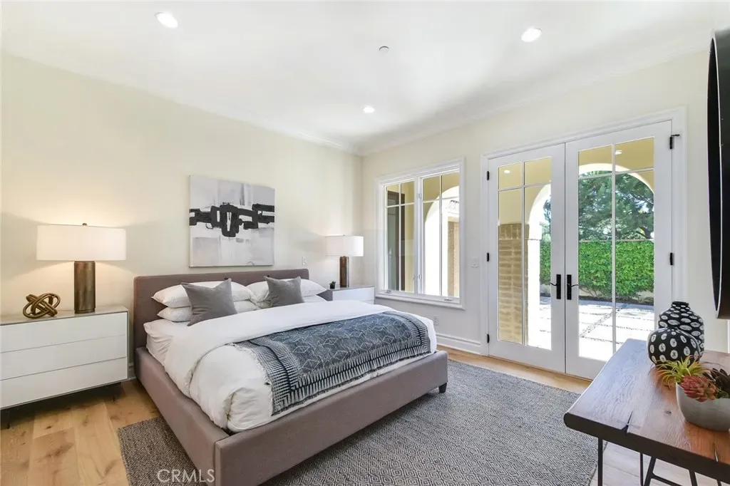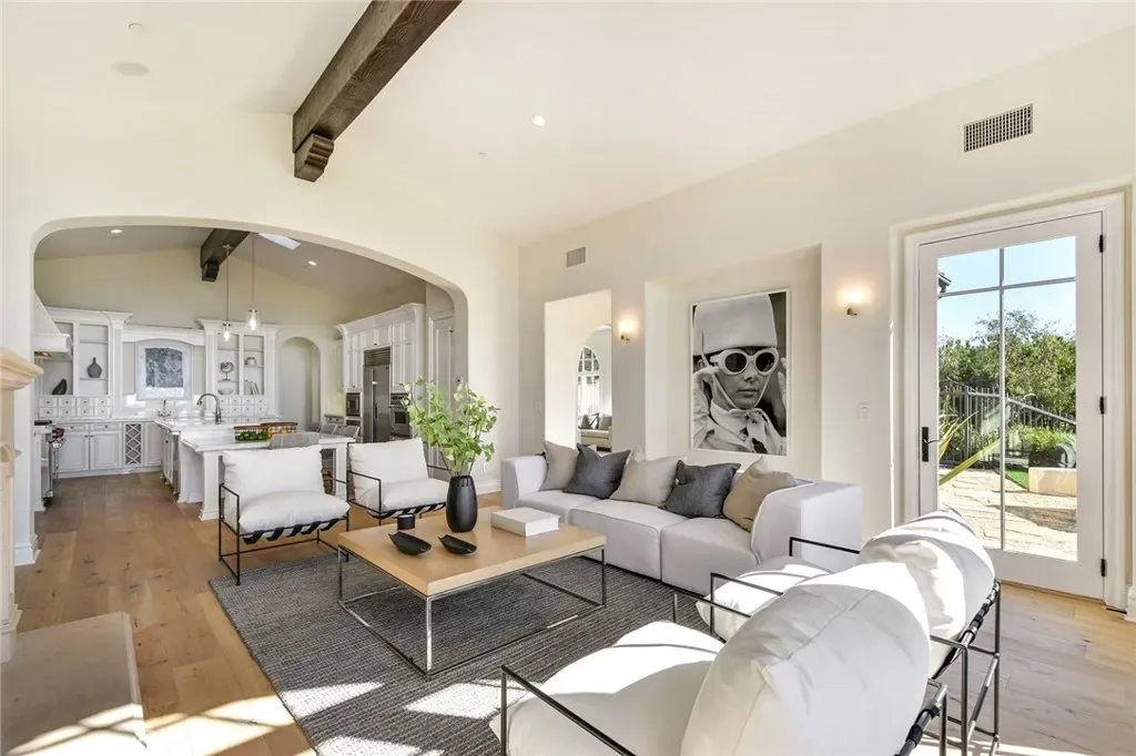 A gated front courtyard welcomes you to the property, where a charming detached casita offers an ideal retreat for guests. Inside, sun-drenched living spaces feature an inviting blend of formal and informal rooms designed for both everyday comfort and refined entertaining. The gourmet kitchen is a chef’s delight, appointed with a Wolf range oven, Sub-Zero and Viking appliances, and Calacatta Oro marble countertops with hand-distressed edges. The spacious owner’s suite, privately situated at the rear of the home, opens through French doors to the backyard oasis and showcases a spa-like bath and ample closet space. Three additional en-suite bedrooms, including the casita, provide exceptional flexibility for family, guests, or office use.