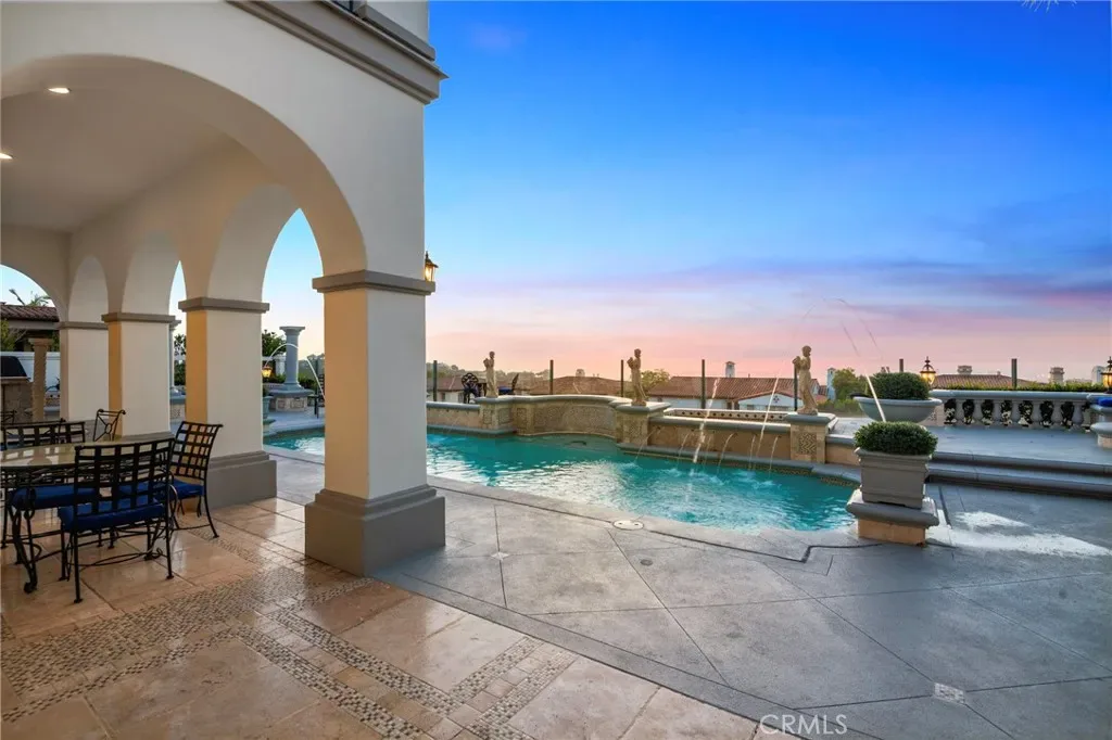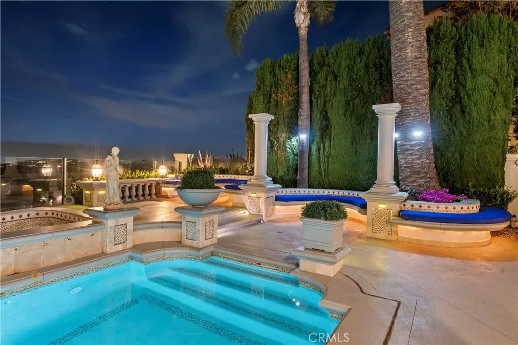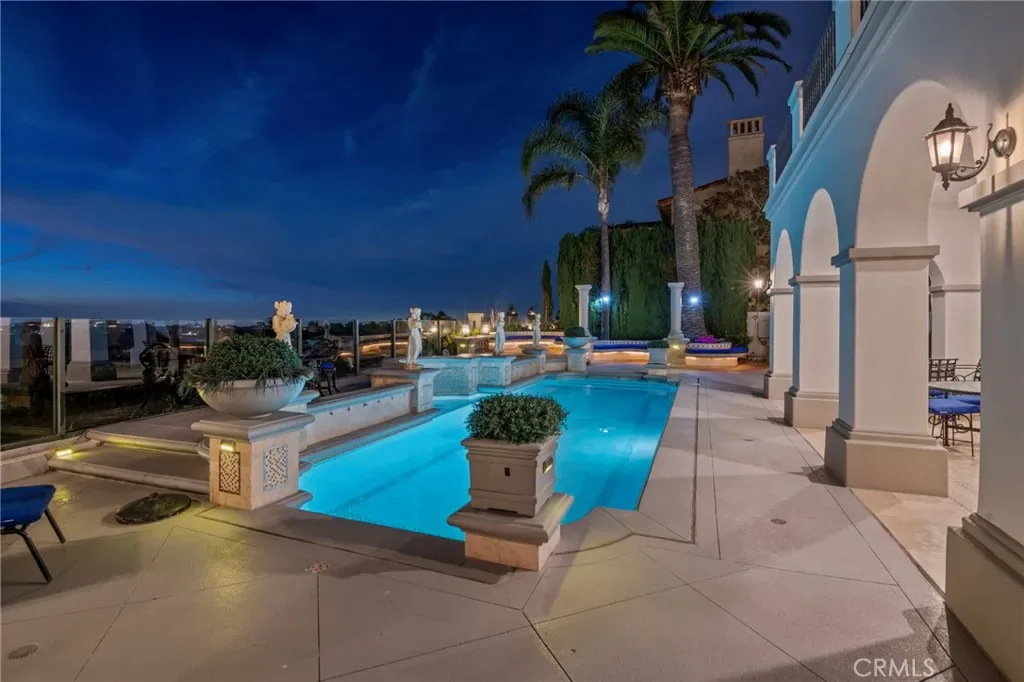 Nestled within one of Newport Coast’s most prestigious and sought-after enclaves, this exceptional estate—originally built as the community’s model home—commands a premier cul-de-sac location with breathtaking 270-degree panoramic views spanning the Pacific Ocean, Catalina Island, city lights, mountains, and rolling valleys. Designed for both elegance and comfort, the residence offers five expansive bedrooms, including a highly desirable main-level suite, ideal for guests or multi-generational living. The home has been extensively upgraded throughout, blending timeless architectural grandeur with refined modern luxury. Interiors showcase soaring two-story ceilings, expansive windows, updated contemporary finishes, new designer rugs, custom drapery, and a completely remodeled collection of spa-inspired bathrooms. The gourmet kitchen has been elevated with top-of-the-line Viking professional appliances, premium countertops, and thoughtful enhancements that cater to both everyday living and sophisticated entertaining. Additional upgrades include dual new air-conditioning systems and a high-end, whole-house water softening and filtration system designed to deliver exceptional water quality throughout the residence. Outdoors, the resort-style backyard offers an inviting pool and spa, built-in BBQ, wet bar, fire pit lounge areas, and newly customized outdoor furnishings, all perfectly positioned to capture coastal breezes and unobstructed views. Private, serene, and impeccably maintained, this estate is moments from Newport Coast’s most iconic beaches, world-class shopping, dining, golf, and coastal amenities. Offered as a turn-key luxury lease, this home presents a rare opportunity to experience an elevated coastal lifestyle in one of Southern California’s most exclusive neighborhoods, which is sure to please.