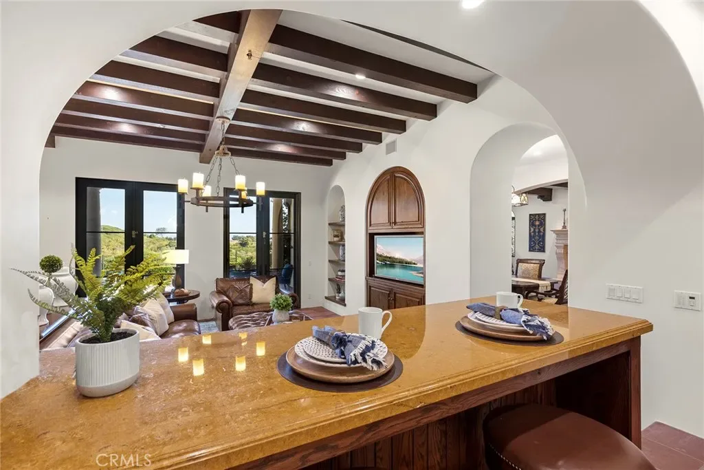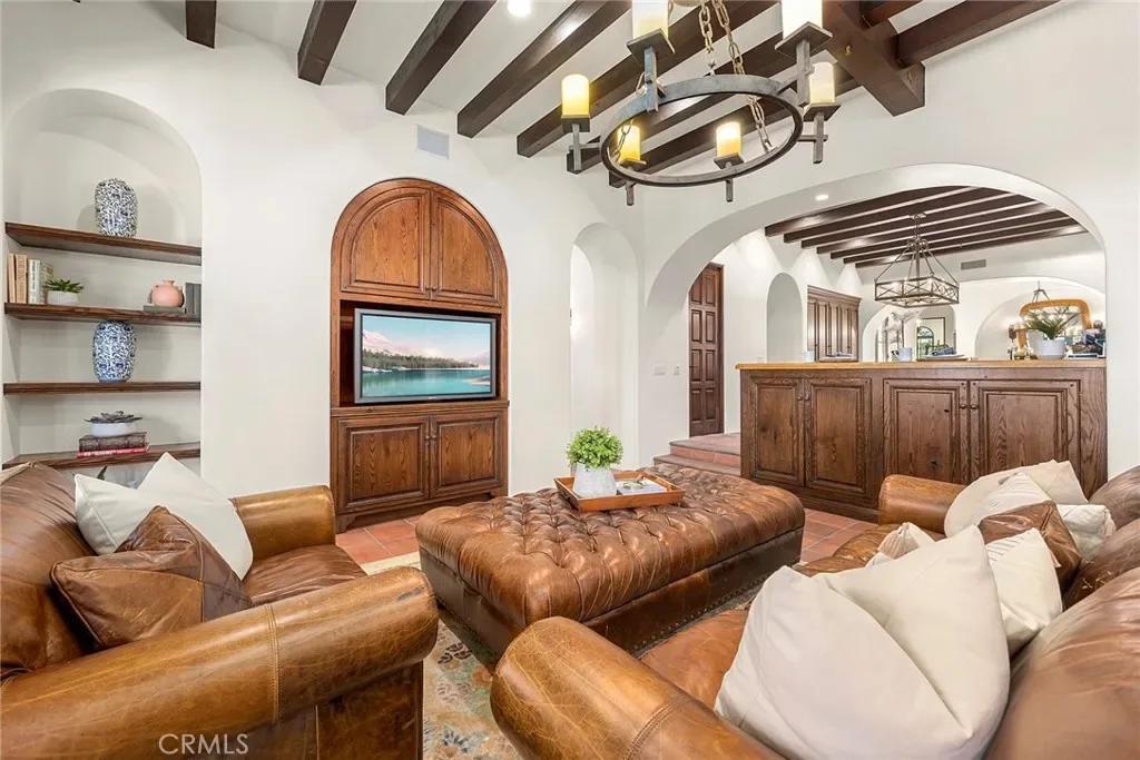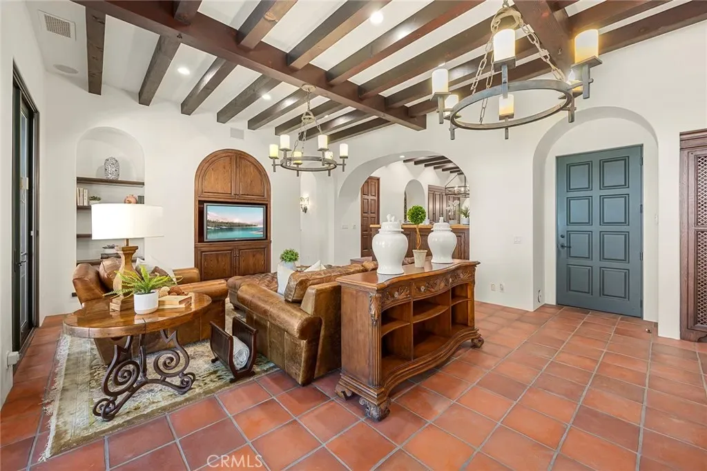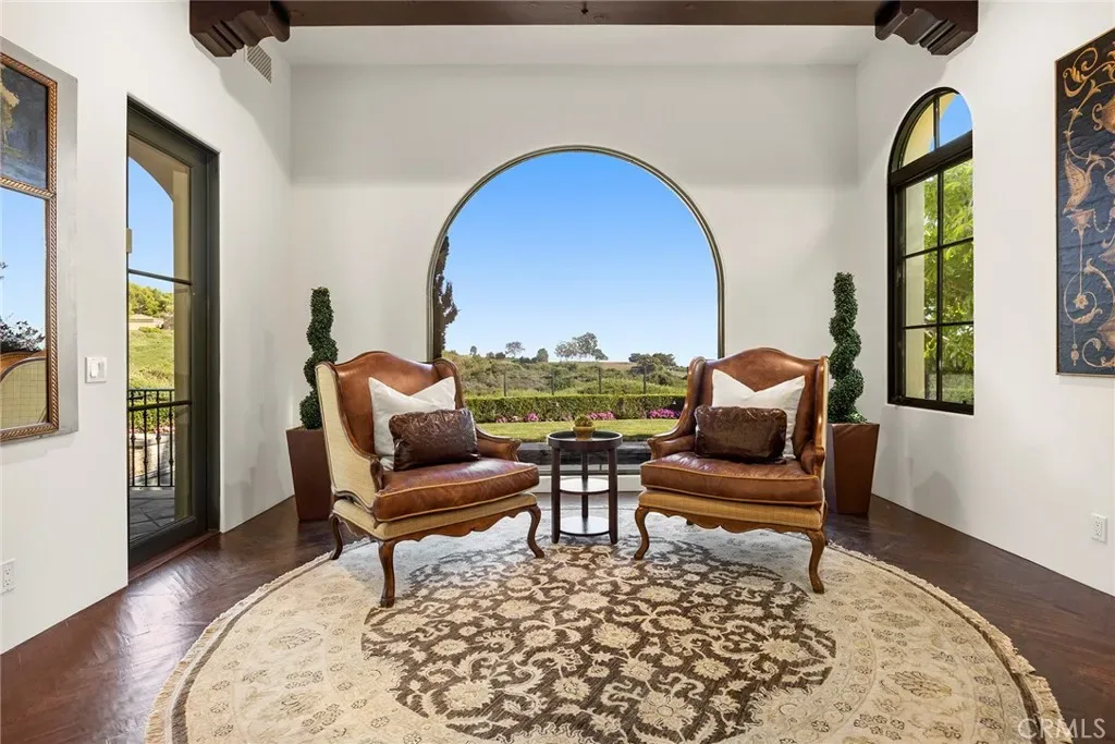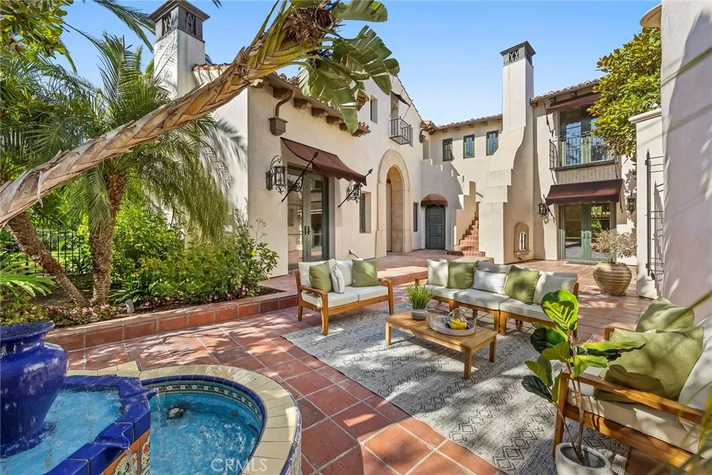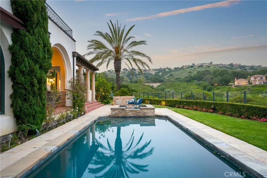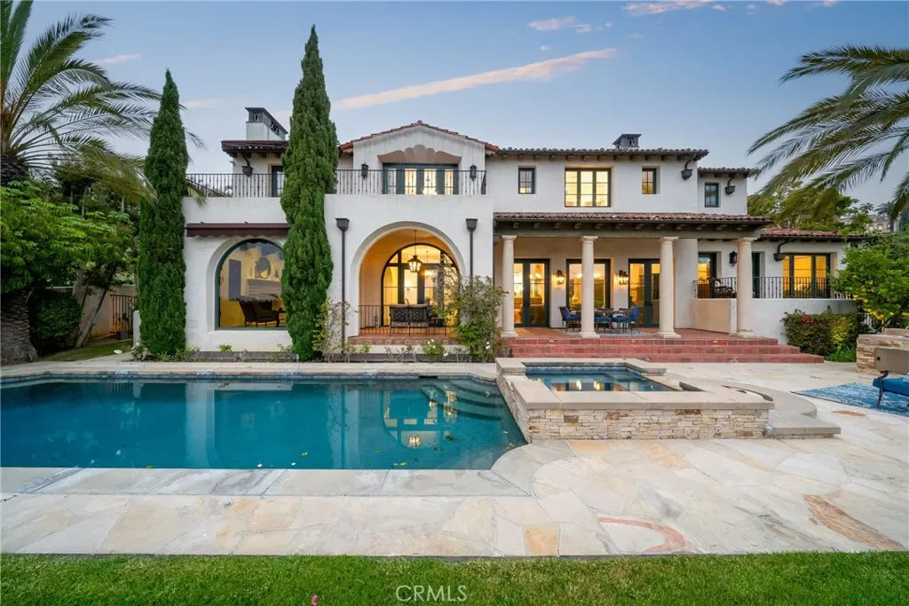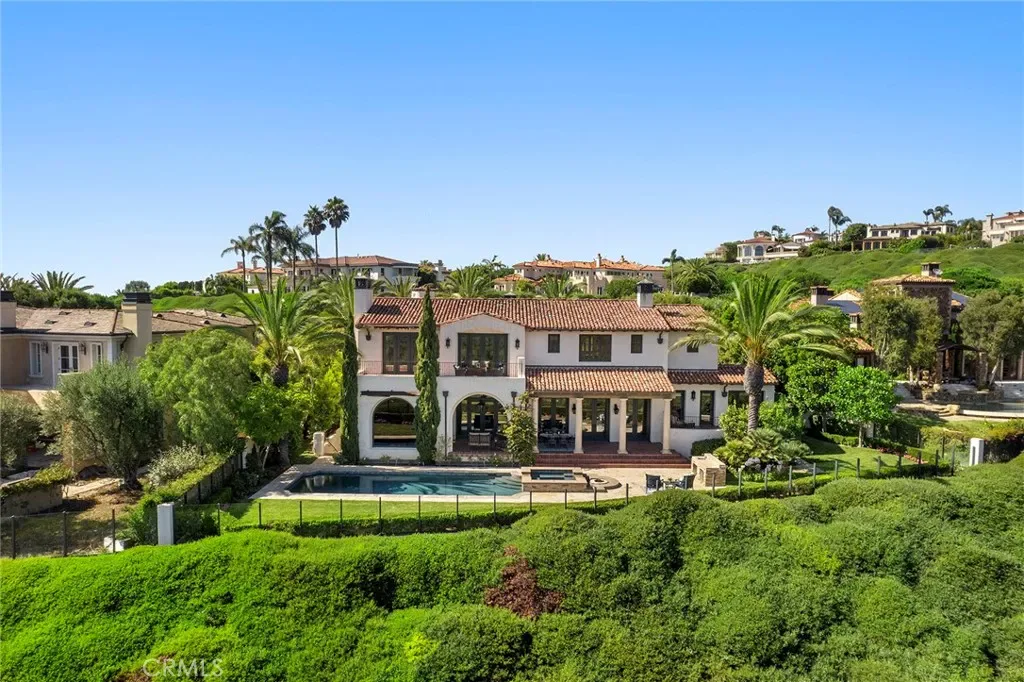 Nestled serenely on the front row, this extraordinary estate commands an elevated position, gifting panoramic vistas that stretch across the expanse of the Pelican Hill Golf Club and beyond, where the azure ocean meets the sky. Encompassing over 7,900 square feet of opulent living space, this residence is a testament to boundless luxury with a distinctive coastal essence. Set within the prestigious confines of an around-the-clock guard-gated community, this property ensures the utmost privacy and security. Adding to the allure is the convenience of an elevator, seamlessly connecting all three levels of the residence. A picturesque embodiment of resort-style living, the custom design of this remarkable home encompasses 5 lavish Bedrooms, 7 Full Bathrooms, and 2 Half Bathrooms. The grandeur is accentuated by the presence of a separate front casita, offering privacy and versatility. A tranquil private courtyard welcomes you, setting the tone for the lavish experience within. The outdoor expanse unveils an oasis of relaxation, complete with a glistening pool, an invigorating spa, and a barbecue area where al fresco dining is an art form. The sweeping views of the golf course merging with the vast ocean create an ever-changing backdrop, enriching each moment spent here. This residence is a symphony of indulgence, exemplified by its offerings of a subterranean 6-car parking garage spanning 1,300 square feet, an upper-level direct access 2-car garage, a wine room for connoisseurs, an intimate theater for cinematic experiences, a well-equipped gym for wellness pursuits, and a soothing sauna for moments of respite. Drawing inspiration from the famed architect Wallace Neff, the residence exudes an air of timeless elegance. Graceful archways and hand-carved beam ceilings adorn the interior, while hand-fired terra cotta flooring graces the floors, each element meticulously chosen to define luxury living. Set within the renowned 504-acre enclave of Pelican Hill®, this home enjoys privileged access to a world of unrivaled coastal beauty. A sanctuary of privacy and seclusion, this community is a testament to refined living, offering a retreat where family and friends gather to create lasting memories. Seize the opportunity to live amidst architectural excellence, surrounded by lush landscaping, and awaken each day to unparalleled vistas. This estate represents the epitome of luxury living, where classic sophistication meets the tranquil allure of coastal living.