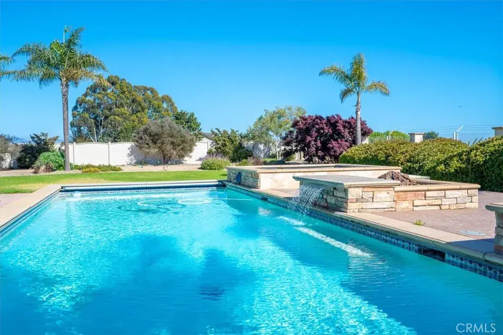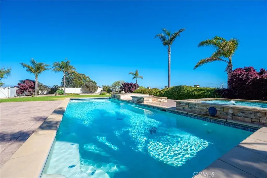 Perched atop 4.8 private acres in one of San Luis Obispo county’s most picturesque settings, this sophisticated residence offers a rare blend of privacy, luxury, and panoramic views just minutes from world-class wineries and premier golf destinations. Designed with both elegance and comfort in mind, the main living area features soaring ceilings, marble floors, expansive windows, and seamless indoor-outdoor living that highlights the natural beauty surrounding the property. A chef’s kitchen with premium appliances opens to both living and dining spaces, ideal for both intimate gatherings and grand-scale entertaining. Upstairs, a versatile loft area offers the perfect space for a home office, yoga studio or media room-adding dimension and flexibility to the mostly single-level floorplan. The luxurious primary suite is a serene retreat, featuring a spa-inspired bathroom, walk in closets and a private outdoor access. There is also a large game room and two wet bars making it perfect for entertaining. Step outside to a true resort style setting, complete with a gorgeous sparkling pool with fountains, hot tub, multiple lounge areas and beautifully landscaped grounds. With addition space to expand or customize with a vineyard or equestrian facilities. This estate offers endless possibilities. Securely gated and peaceful, while minutes away from Edna Valley, premier golfing and amazing beaches. This estate also also has fire sprinklers and its own hydrant on site.