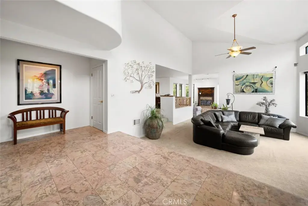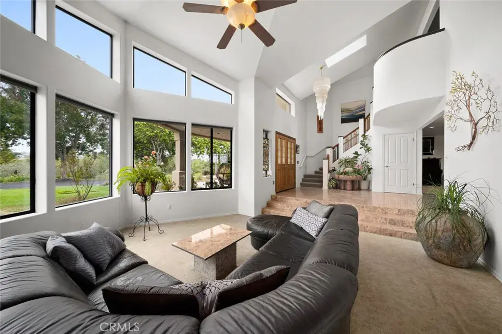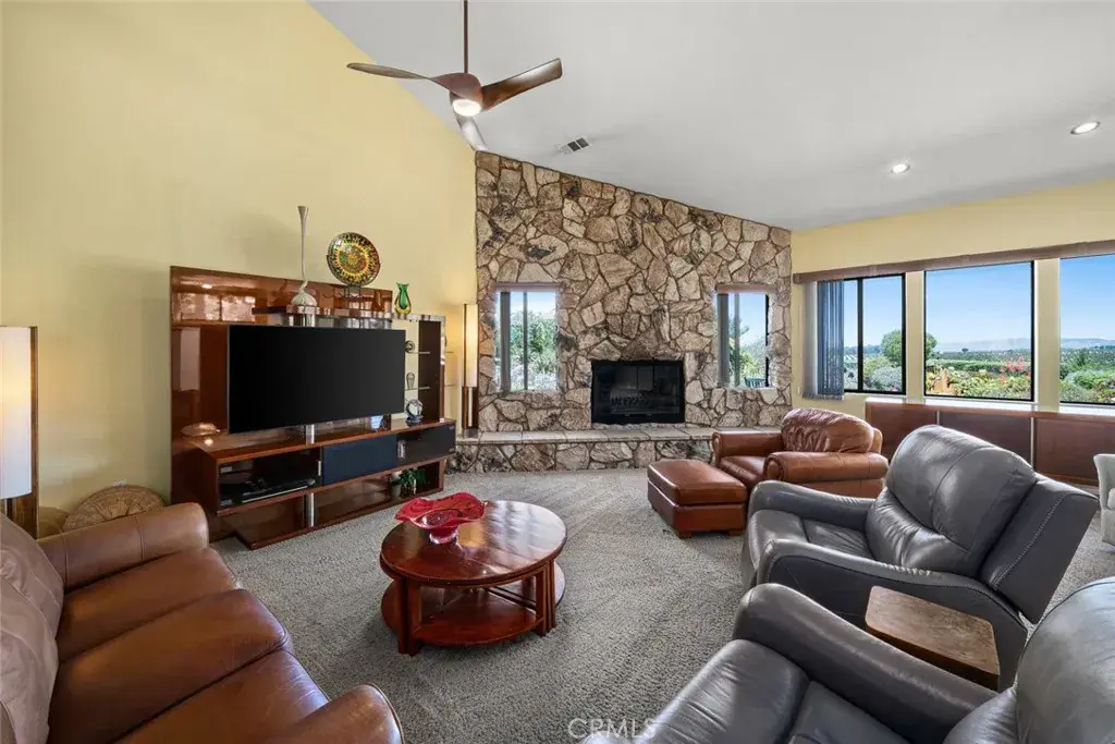 Enter a dramatic sunken family room where a floor-to-ceiling stone wall with inset windows and fireplace creates the ultimate hangout zone. Need more space? There’s a bright and elegant formal dining room that opens to a view-drenched patio, plus a second lounge area with another cozy fireplace.