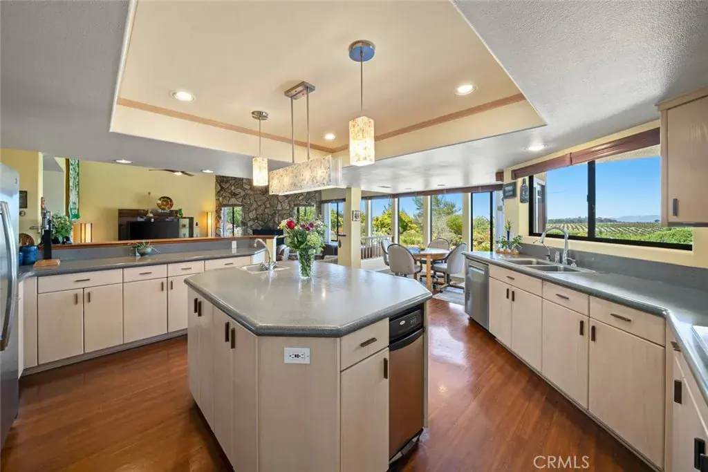 Built with superior craftsmanship, designed to embrace bold views from every angle, and upgraded for modern luxury, this property brings a whole new level of excitement to daily living. The layout is open, flowing, and built for entertaining—starting with a show-stopping chef’s kitchen featuring Corian counters, massive prep island with sink, sleek stainless appliances, designer lighting, and custom cabinetry.