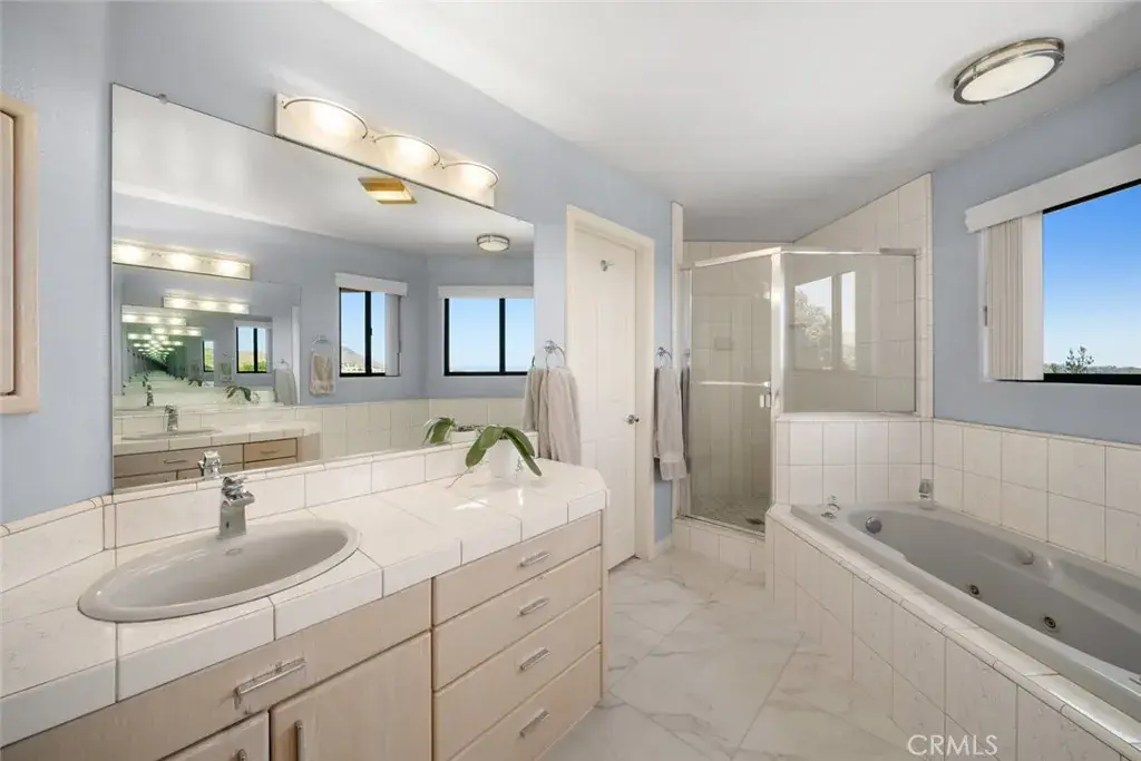 Upstairs, the primary suite is an absolute showstopper—with a private balcony, spa-inspired bathroom (jetted tub, glass + tile shower, walk-in closet), and epic views that make waking up feel like a dream.