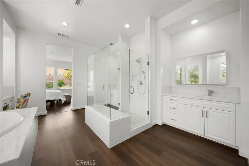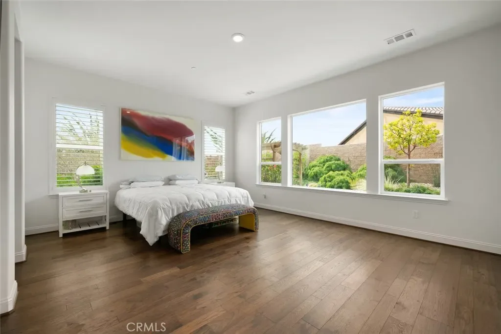 Sleek. Modern. Expansive. Welcome to the Carmel, one of the most highly-sought-after models, offering the space and luxury you deserve. Built in 2017, at 2991 sq. ft., this beautiful modern home features 3 bedrooms, 4 bathrooms, a sunroom and a Casita with private entrance. What makes this floor plan so popular is the flexibility of the main living spaces – a living room, family room and formal dining room surround the kitchen with infinite possibilities how the space is used. This particular Carmel has been highly customized with stunning engineered hardwood floors throughout, custom light fixtures, Plantation shutters (where needed) – the family room features a media/art display wall, the back patio has been completely enclosed to create a unique sunroom, and the entire property has been professionally designed with hardscape and landscaping to bring it to its full potential. Starting in the all-white kitchen of your dreams, you’ll love the top-of-the-line GE Monogram appliances including a built-in refrigerator, 6-burner gas cooktop and double wall ovens, beverage fridge, gorgeous white quartz countertops, raised panel white cabinets (many of the uppers are lighted with display glass), glossy glass tile backsplash, a large quartz island and a substantial walk-in pantry. Entertaining is a breeze – relax in the sunroom or continue outside to the custom waterfall wall with hand painted tiles and fire pit, or meander the garden paths to large sitting areas on both sides of the massive yard. Back inside, your owner’s suite awaits with a spacious bedroom and an all-white luxury spa bathroom with dual sinks, large shower with dual shower heads and seamless glass enclosure, separate Roman tub, vanity, linen storage and a fully outfitted walk-in closet with mirrored door. The guest wing features a bedroom with en-suite all-white bathroom and a self-contained Casita with private entrance, living room, bedroom and all-white spa bathroom with sink, vanity, quartz countertops and tile shower with seamless glass enclosure. Additionally, there’s a powder room, SmartSpace/laundry with built-in work station, solar, and a 2-car garage with EV charging plug. This gorgeous home, located in Trilogy Monarch Dunes, will not last long. Call us today!