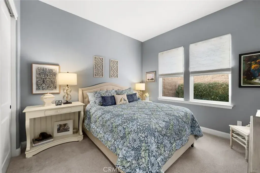 Modern Ranch meets California Coastal in this exquisitely upgraded Ventana floorplan, perfectly positioned to capture sweeping views of the vineyards, the shimmering lake and fountain, and the mountain range that frames the horizon. From sunrise to sunset, the scenery becomes a stunning natural backdrop—ever changing and always captivating. The home’s exceptional curb appeal sets an immediate impression of quality. Fresh exterior paint, stone-accented retaining walls, and a beautifully designed paver courtyard with a tranquil fountain create a welcoming entry that reflects the care and attention invested throughout the property. Inside, the chef’s kitchen features stylish white cabinetry with premium hardware, quartzite slab countertops, a generous island, a built-in refrigerator, and stainless appliances with a sleek range hood. The kitchen opens seamlessly to the great room, where a dramatic floor-to-ceiling stacked-stone fireplace adds warmth and architectural presence. Professionally designed interiors elevate every room. Automatic window treatments, plantation shutters, oak hardwood floors, and wallpaper-accented rooms create a sophisticated aesthetic. The optimized Smart-Space laundry room enhances convenience with custom cabinetry, a sink, and a built-in desk area along with a bay of cabinets in the garage for added storage. The outdoor living experience is a true highlight of this home. The covered patio functions as an additional living room, offering year-round comfort with a drop-down shade and generous space for dining or lounging. Beyond, paver pathways lead to a peaceful sitting area with built-in firepit overlooking the lake and fountain—an ideal vantage point to enjoy the reflection of the sun on the water and the dramatic silhouette of the mountains as the sky shifts throughout the day.