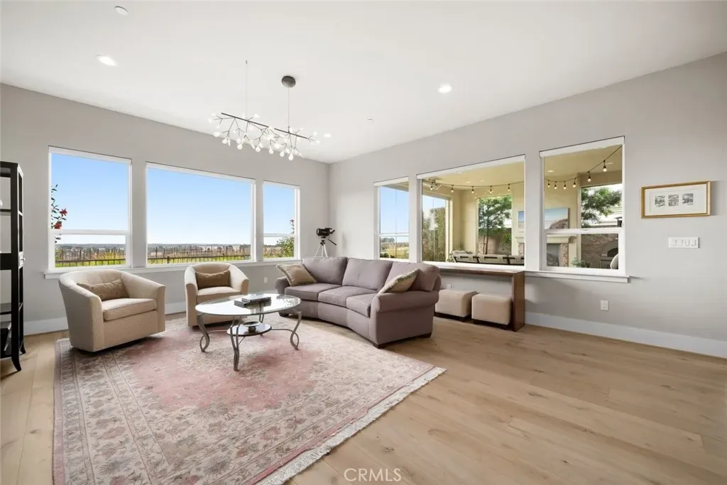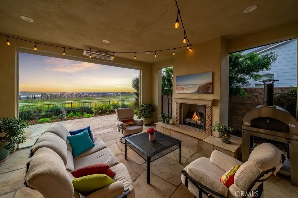 Welcome to the Riviera, a stunning Estate home offering breathtaking views of the Pacific Ocean, sand dunes, vineyard and mountains: Impeccably designed for optimum daily living and stylish entertaining. This 3 bedroom, 3.5 bath, plus office home offers an abundance of upgrades – over $400,000 worth, on top of a $200,000 lot premium. You’ll appreciate the gorgeous engineered wood flooring, plantation shutters, Silhouette shades with blackout option, and luxurious light fixtures throughout. Enter through a Dutch door into a private portico/courtyard with serene landscaping, tiered fountain, radiant ceiling heaters, multiple seating areas, plus a private entrance to the Casita. Step into the main home and you’ll discover a music room/office, plus culinary kitchen, spacious great room and dining space with abundant natural light and incredible open views. The kitchen features rich, soft-close Shaker style cabinetry, GE Profile appliances, including a gas cooktop with stainless hood, double wall oven, built-in refrigerator, white quartz island and countertops and tiled backsplash. Adjacent, is a supersized walk-in pantry and fully-customized Smart Space/laundry room. The outdoor space is equally amazing with a numerous fruit trees, raised garden beds, spectacular views, and the “California Room”, a screened and sliding glass enclosed 320 sq. ft. patio with radiant ceiling heaters, flagstone floors, fireplace with flagstone hearth and a secluded hot tub for sunset relaxation. At night, retire to the owner’s suite, an inviting well-appointed bedroom with a luxurious spa bath featuring a walk-in shower, separate dual sinks, soaking tub, walk-in closet with/dual-sided mirrored door and linen storage. The guest wing includes a powder room, 2nd bedroom with full en-suite bath, and the independent air conditioned Casita with bedroom/sitting area, full bath and walk-in closet. Additionally, there’s a 3-car tandem garage with showroom epoxy floors, storage wall panels, custom cabinetry, and storage. High tech upgrades – LifeSource whole house water filtration system, additional owned solar panels, two owned Tesla power walls and an integrated security system with key-less entries. You’ll never want to leave this meticulously designed home, but when you do, you’ll be part of the unique Trilogy experience with championship golf, pickleball, tennis, member-led clubs, exclusive lifestyle activities, two award-winning restaurants, fitness center and Sandalwood Spa.
