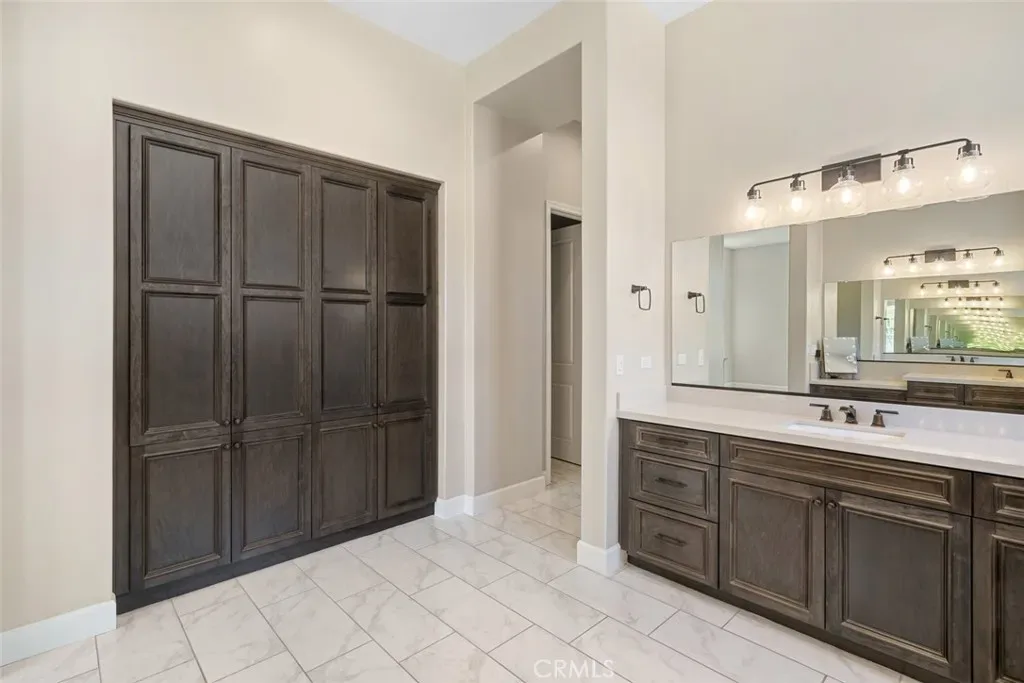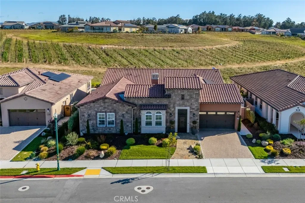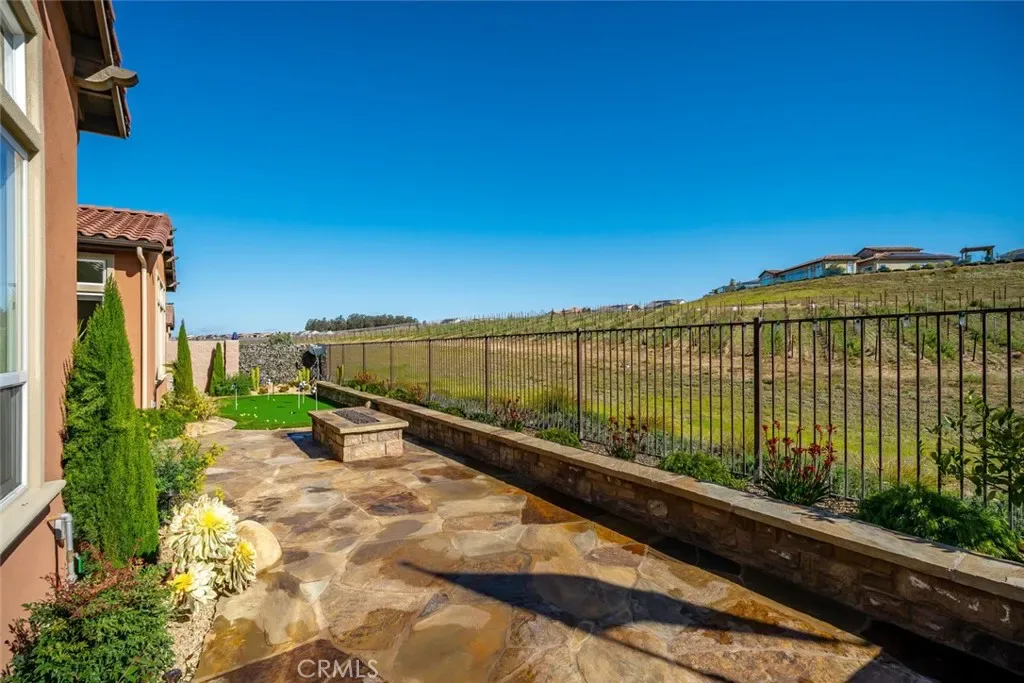 Welcome to this majestic, nearly new, Dolcetto Estate home with a spectacular 180-degree vineyard view, surrounded by stunning flagstone hardscape and lush landscaping. Built in 2022, this magnificent 3 bedroom + Den, 3.5 bath home offers 3,563 sq. ft. of impeccably designed living/entertaining space where no expense was spared. Enter through the enclosed courtyard with beautiful flagstone floors, a stone fireplace and French doors on three sides – it’s sure to be your private “go-to” place to relax. Inside, you’re met with sweeping views through the many windows/transom windows and the rolling wall of glass which unite the inside with the great outdoors – the backyard features a built-in fire pit, barbecue/kitchen and your own private putting green – this is Trilogy living at it’s best! And, that’s just the tip of the iceberg – starting with the impeccably designed culinary kitchen, you’ll love the rich raised-panel cabinetry with multiple pot drawers, top-of-line Wolf stainless steel appliances, including double wall ovens and a 6-burner gas cooktop with industrial stainless hood, Sub-Zero built-in refrigerator, gorgeous quartz countertops and large T-shaped island with modern pendant lighting and seating for 8, plus a walk-in pantry – it’s a chef’s dream! Surrounding the kitchen is a wraparound great room with stone fireplace, built-in lower cabinets and a spacious dining space with a striking custom chandelier – it’s bright, airy, and the views are outstanding. The private owner’s suite has a super spacious bedroom with custom chandelier, sleek power window shades, sitting area and direct patio access. The master bath is luxury personified – stunning tile shower with wraparound glass enclosure, Roman tub, separate dual sinks, vanity, linen storage, plus a massive, customized walk-in closet with convenient pass-thru to the laundry. Beyond are two guest bedrooms, both with walk-in closet and full en-suite bathroom with shower and exceptional finishes. Additionally, there’s an office, powder room, upgraded ceramic tile flooring, A/C, SOLAR, and a 3-car tandem garage with showroom epoxy floors, and upper storage rack. You may never want to leave this gorgeous home, but when you do you’ll have access to all the resort style amenities Trilogy has to offer.