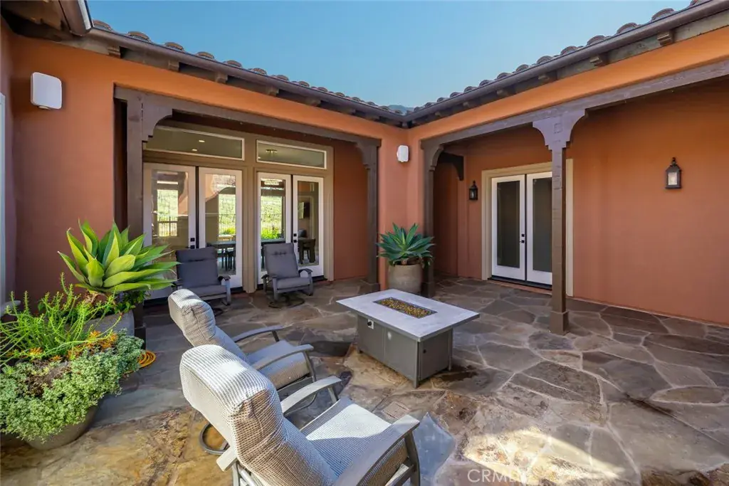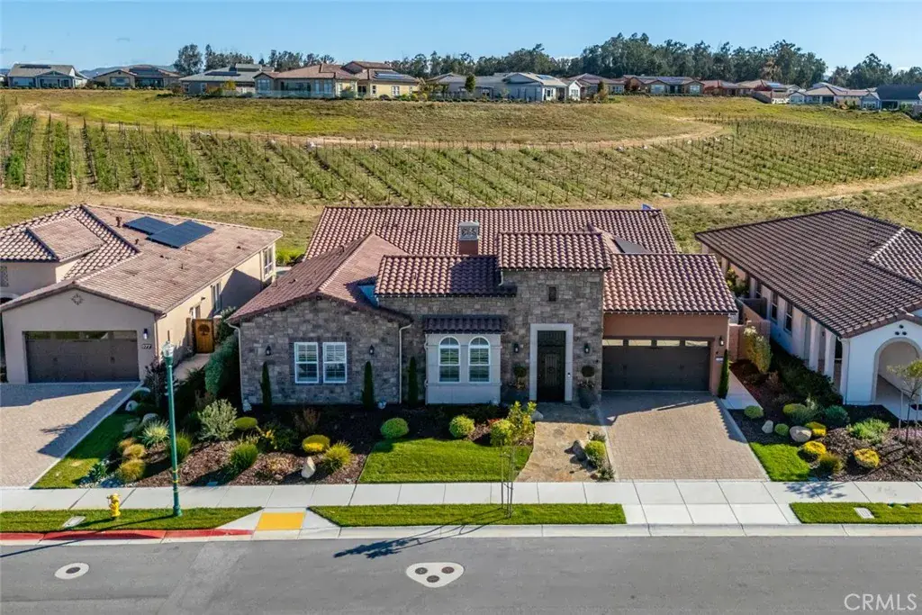 Welcome to this majestic, nearly new, Dolcetto Estate home with a spectacular 180-degree vineyard view, surrounded by stunning flagstone hardscape and lush landscaping. Built in 2022, this magnificent 3 bedroom + Den, 3.5 bath home offers 3,563 sq. ft. of impeccably designed living/entertaining space where no expense was spared. Enter through the enclosed courtyard with beautiful flagstone floors, a stone fireplace and French doors on three sides – it’s sure to be your private “go-to” place to relax. Inside, you’re met with sweeping views through the many windows/transom windows and the rolling wall of glass which unite the inside with the great outdoors – the backyard features a built-in fire pit, barbecue/kitchen and your own private putting green – this is Trilogy living at it’s best! And, that’s just the tip of the iceberg – starting with the impeccably designed culinary kitchen, you’ll love the rich raised-panel cabinetry with multiple pot drawers, top-of-line Wolf stainless steel appliances, including double wall ovens and a 6-burner gas cooktop with industrial stainless hood, Sub-Zero built-in refrigerator, gorgeous quartz countertops and large T-shaped island with modern pendant lighting and seating for 8, plus a walk-in pantry – it’s a chef’s dream! Surrounding the kitchen is a wraparound great room with stone fireplace, built-in lower cabinets and a spacious dining space with a striking custom chandelier – it’s bright, airy, and the views are outstanding. The private owner’s suite has a super spacious bedroom with custom chandelier, sleek power window shades, sitting area and direct patio access. The master bath is luxury personified – stunning tile shower with wraparound glass enclosure, Roman tub, separate dual sinks, vanity, linen storage, plus a massive, customized walk-in closet with convenient pass-thru to the laundry. Beyond are two guest bedrooms, both with walk-in closet and full en-suite bathroom with shower and exceptional finishes. Additionally, there’s an office, powder room, upgraded ceramic tile flooring, A/C, SOLAR, and a 3-car tandem garage with showroom epoxy floors, and upper storage rack. You may never want to leave this gorgeous home, but when you do you’ll have access to all the resort style amenities Trilogy has to offer.