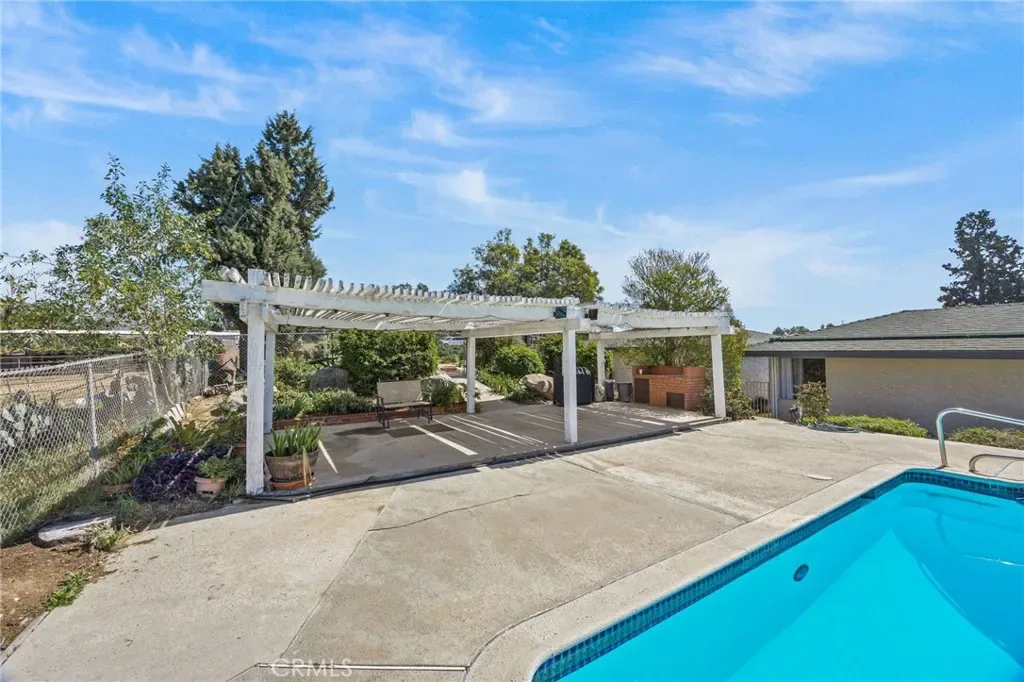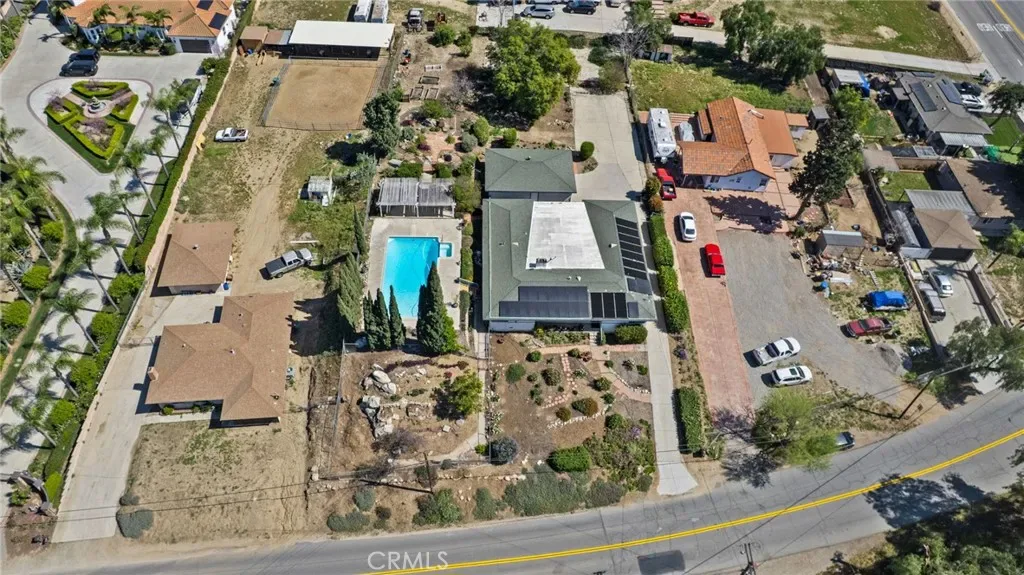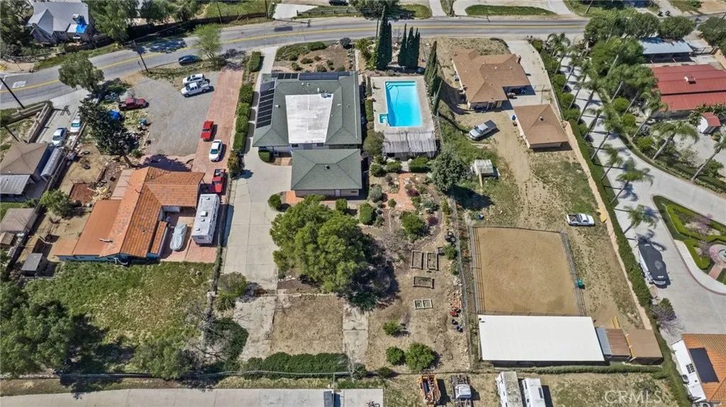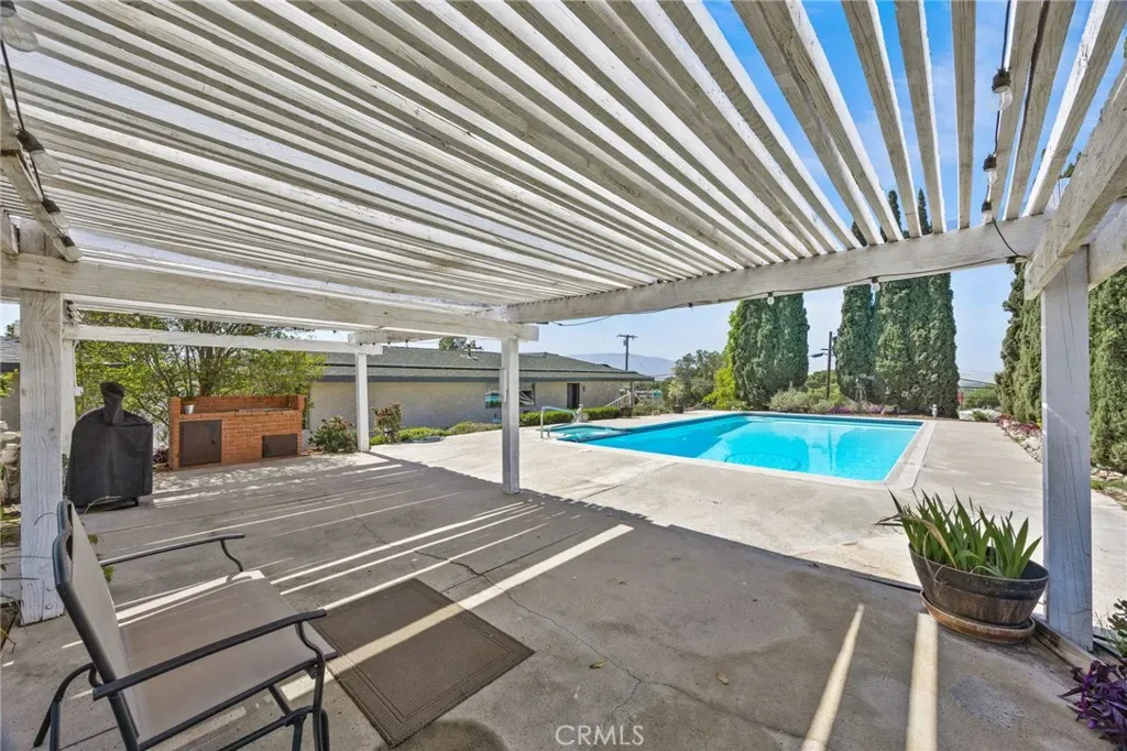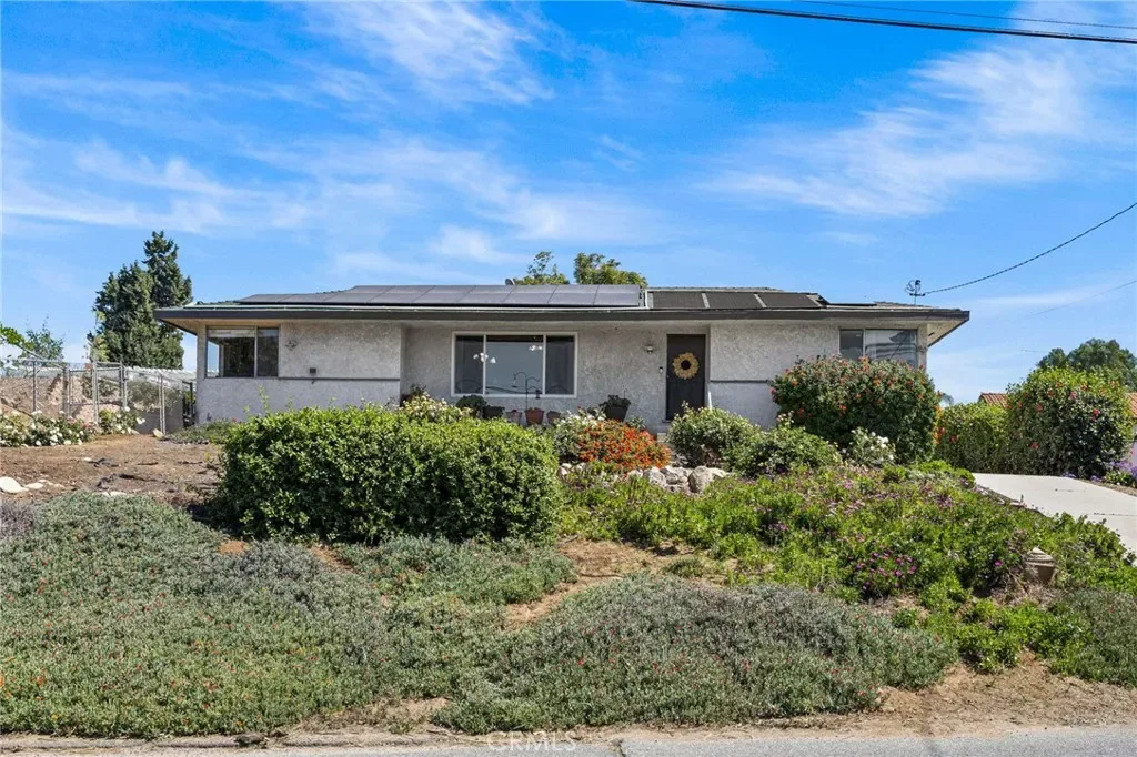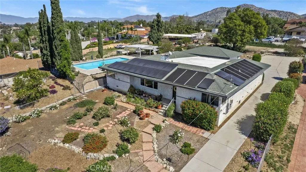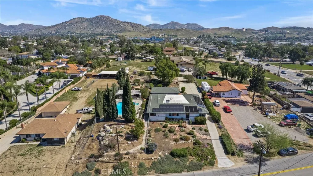 Discover this single-story mid-century modern ranch Pool Home on a 28,314 sq ft horse property lot in Norco, CA. Boasting 4 bedrooms and 2 upgraded bathrooms with walk-in showers, this home spans 2,224 sq ft, plus an 800 sq ft enclosed bonus/enclosed patio room in the middle of the house (not part of dwelling footage on tax roll). The custom kitchen features light oak cabinets, granite countertops, a center island, breakfast counter, gas range and stainless steel refrigerator, opening to a large dining area with stunning city views. Original hardwood floors in select rooms complement soft, inviting colors throughout the home. The primary bedroom is spacious and light-filled, while the primary bathroom offers a modern walk-in shower with custom tile and corner seat, plus floor-to-ceiling light oak cabinetry. The bonus/enclosed patio room is perfect for a workshop, game room, or home gym, complete with double French doors to outside & barn doors to living room. Step outside to a large pool with attached spa, surrounded by extensive concrete decking and evergreen trees. A large lattice patio creates a perfect entertaining area, all with breathtaking mountain and city views. Additional highlights include solar panels, oversized detached garage with storage/workshop space, and Norco horse trail access, all with convenient freeway access. Ideal for horse owners, equestrian families, multi-generational households, or buyers seeking a rural lifestyle with entertaining space, this Norco horse property also offers room to build an ADU with views, making it an exceptional opportunity.