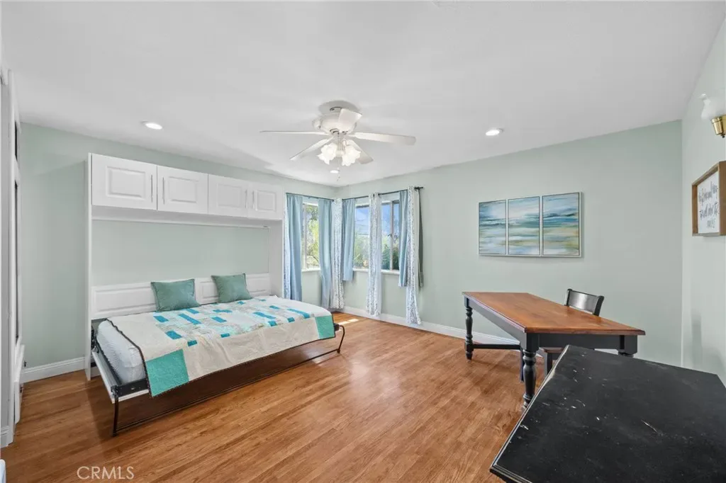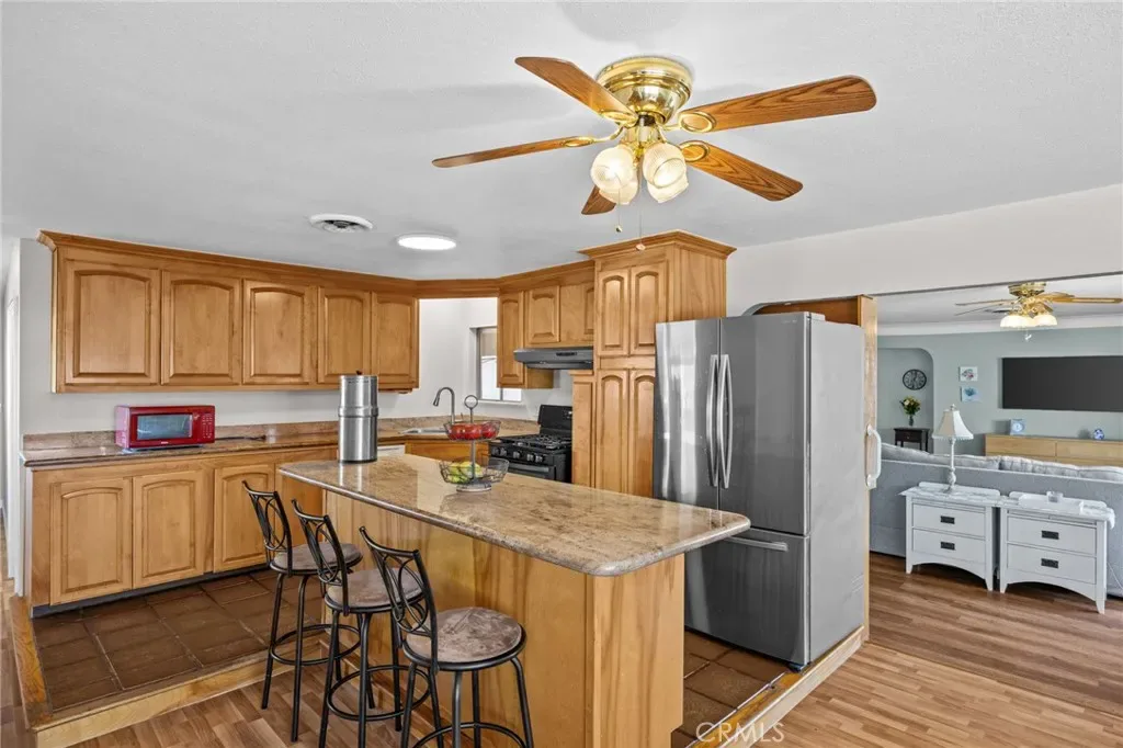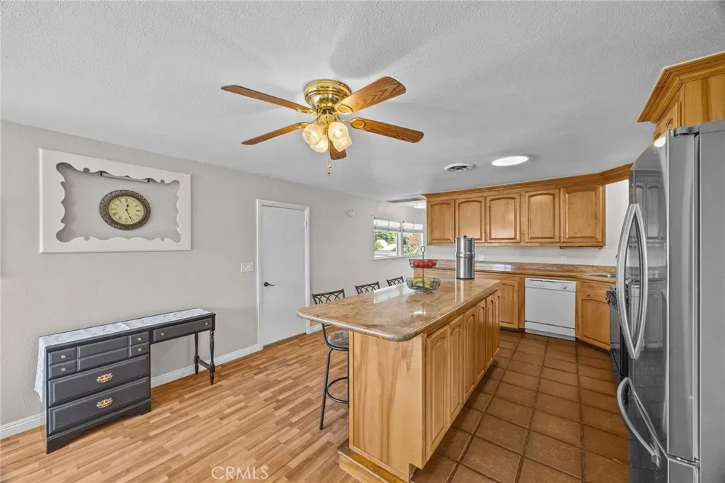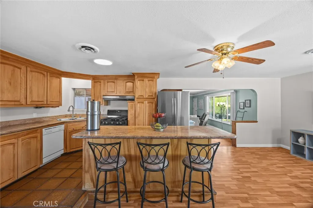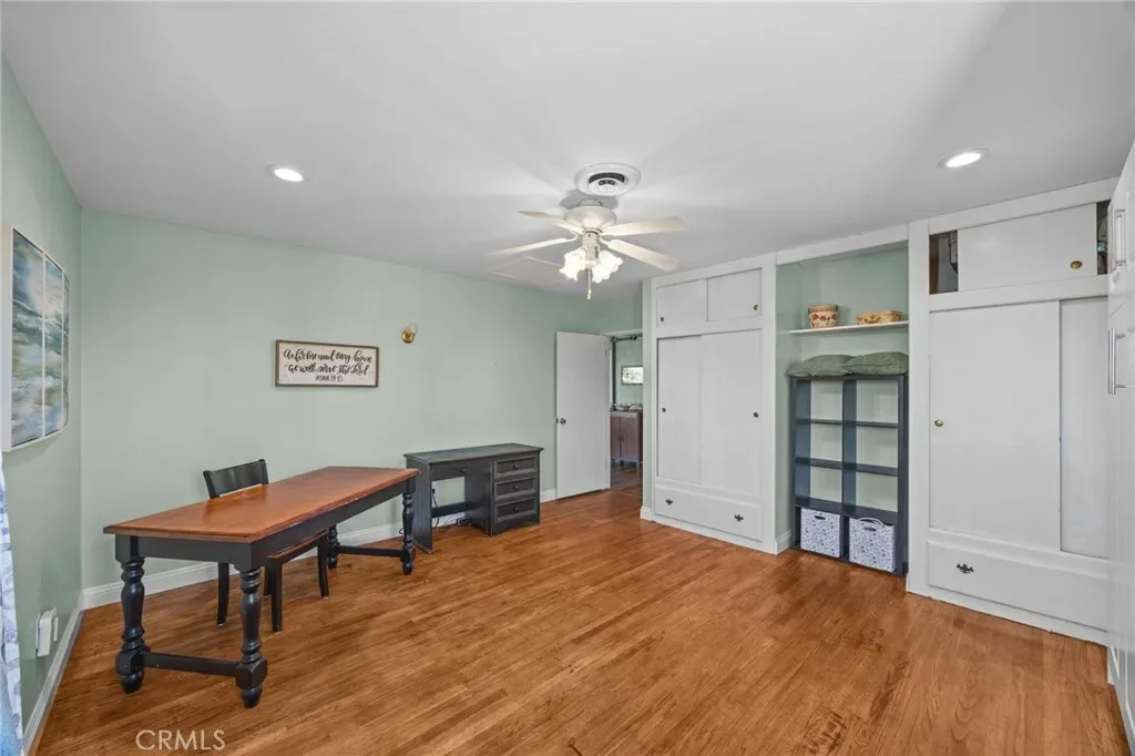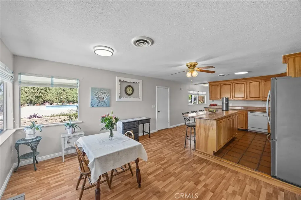 Discover this single-story mid-century modern ranch Pool Home on a 28,314 sq ft horse property lot in Norco, CA. Boasting 4 bedrooms and 2 upgraded bathrooms with walk-in showers, this home spans 2,224 sq ft, plus an 800 sq ft enclosed bonus/enclosed patio room in the middle of the house (not part of dwelling footage on tax roll). The custom kitchen features light oak cabinets, granite countertops, a center island, breakfast counter, gas range and stainless steel refrigerator, opening to a large dining area with stunning city views. Original hardwood floors in select rooms complement soft, inviting colors throughout the home. The primary bedroom is spacious and light-filled, while the primary bathroom offers a modern walk-in shower with custom tile and corner seat, plus floor-to-ceiling light oak cabinetry. The bonus/enclosed patio room is perfect for a workshop, game room, or home gym, complete with double French doors to outside & barn doors to living room. Step outside to a large pool with attached spa, surrounded by extensive concrete decking and evergreen trees. A large lattice patio creates a perfect entertaining area, all with breathtaking mountain and city views. Additional highlights include solar panels, oversized detached garage with storage/workshop space, and Norco horse trail access, all with convenient freeway access. Ideal for horse owners, equestrian families, multi-generational households, or buyers seeking a rural lifestyle with entertaining space, this Norco horse property also offers room to build an ADU with views, making it an exceptional opportunity.