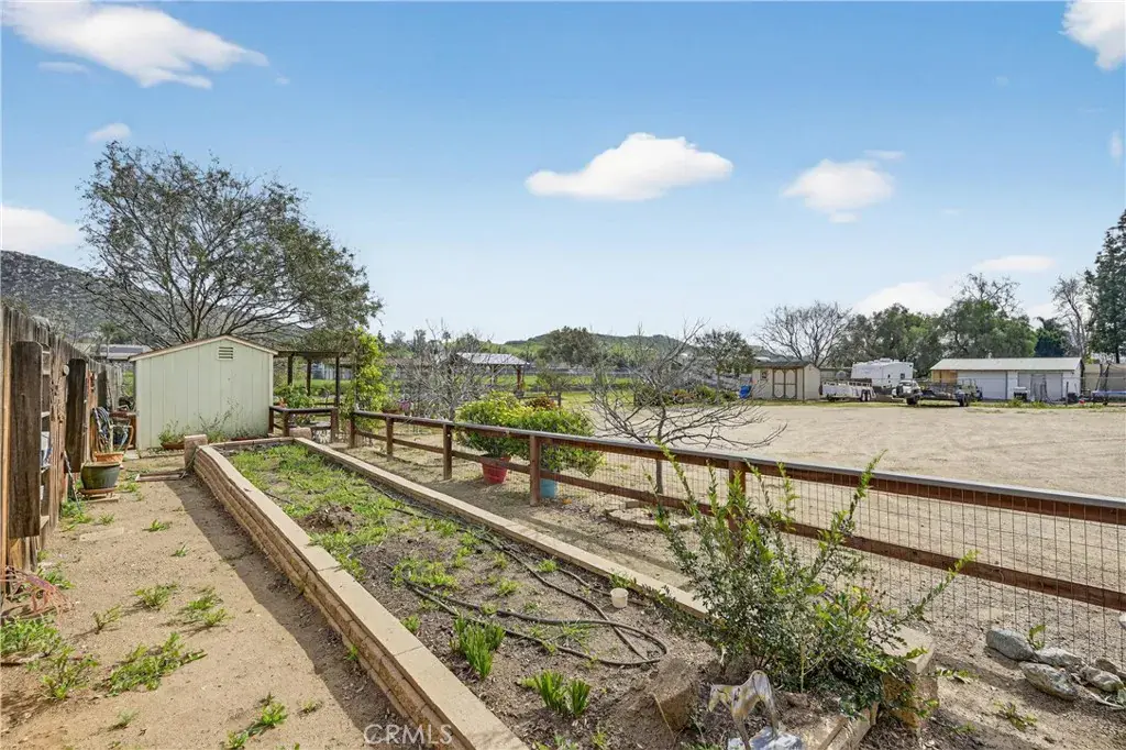 The property is compliant for horses and has a tack shed, but owners preferred fruit trees (pomegranate, apple, peach, plum, lime, Meyer lemon and orange), a fenced vegetable garden with shed and eating alfresco under the custom gazebo. Plenty of room for boat or RV parking. You can make this home your own country paradise!