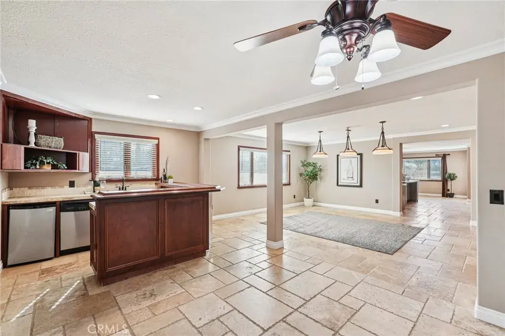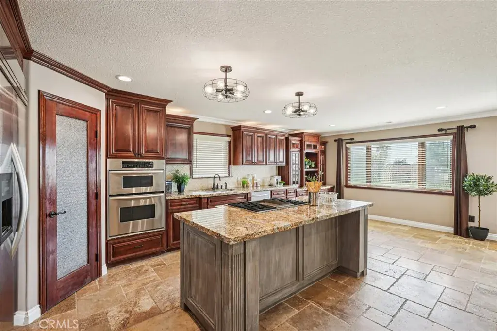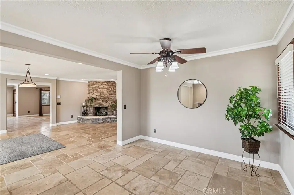 The home has been thoughtfully updated with a new circular cement driveway, low-maintenance artificial turf, and fruit trees creating beautifully manicured outdoor spaces. Inside, you’ll find fresh interior and exterior paint, new carpet in the bedrooms, and new travertine flooring throughout. The custom kitchen features high-end appliances and opens seamlessly to the family room—perfect for entertaining and everyday living.