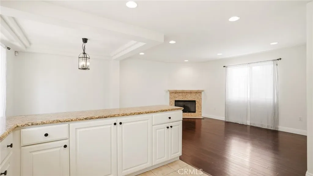 The kitchen features granite countertops and newly painted cabinetry with updated pulls, offering a fresh, modern look with ample storage. The spacious primary suite includes large walk-in closets and a well-appointed en-suite bath.